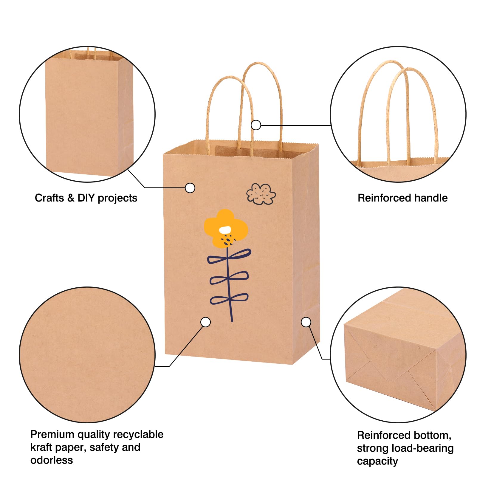 Taking care of our planet: These small paper bags are safe and odorless. Compared to plastic bags, they are more elegant. You can freely reuse our paper bags with handles and help reduce waste by recycling them.