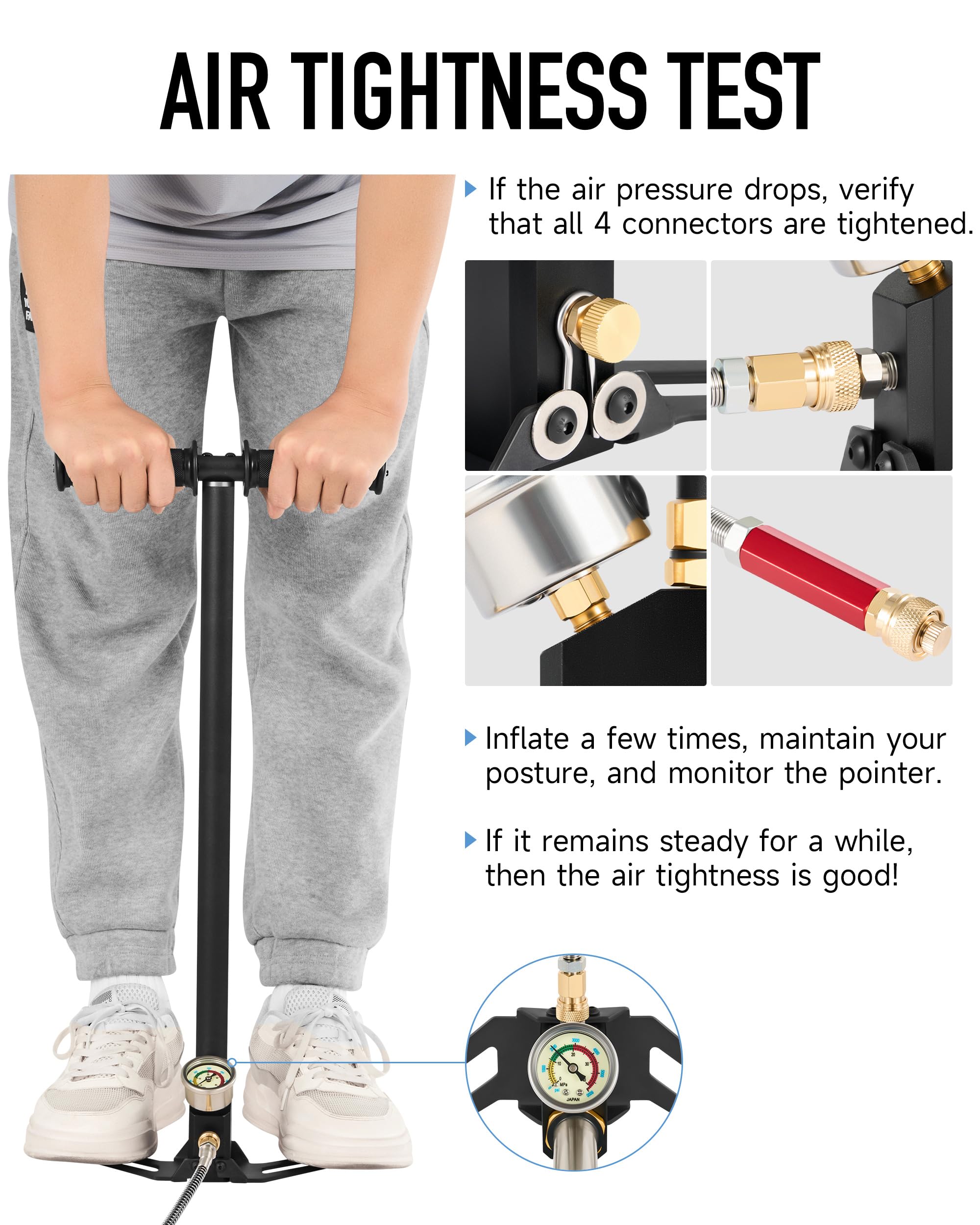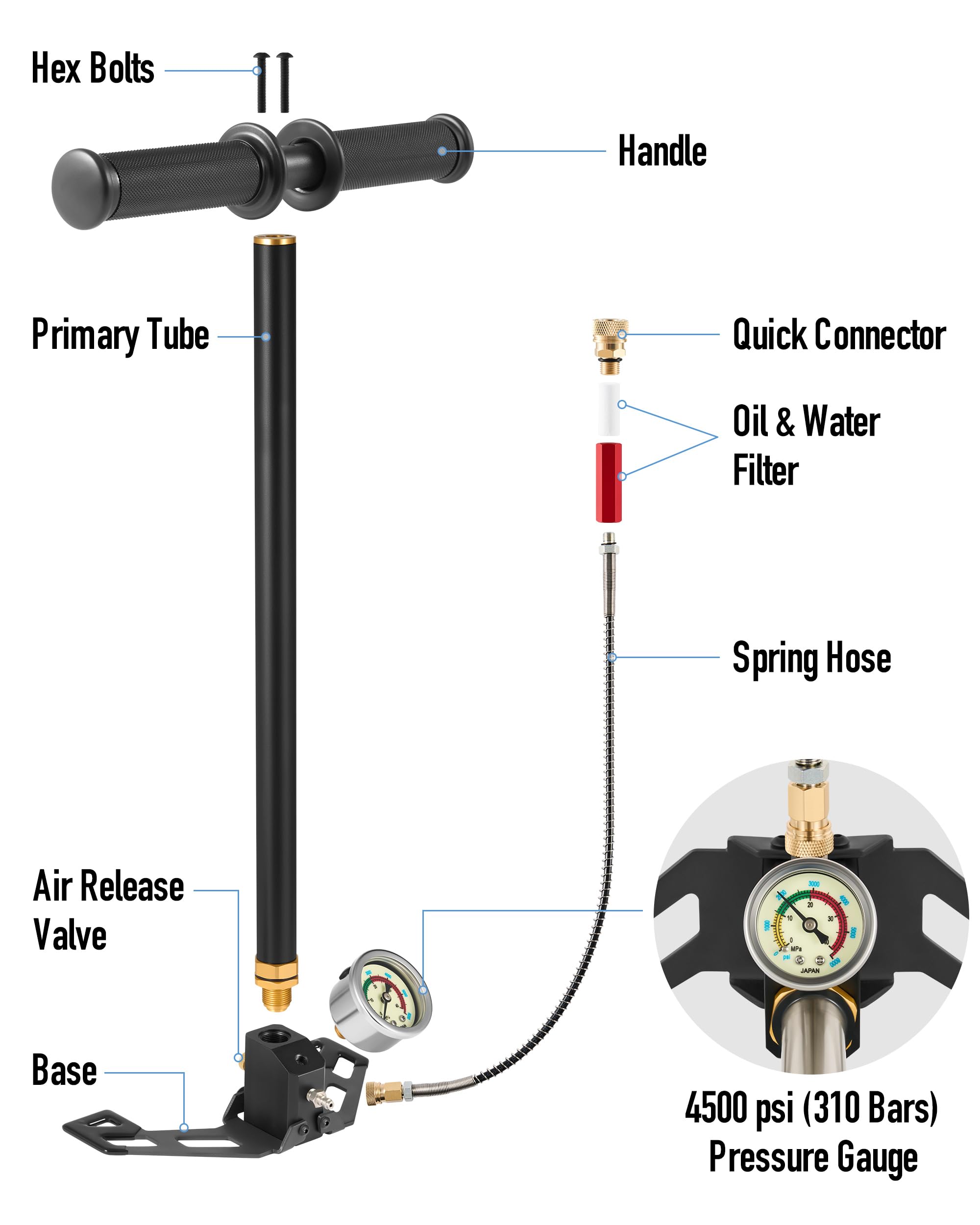 Accurate Reading: Our PCP hand air pump comes with a precise gauge that delivers easy-to-read & accurate pressure readings, ranging from 0-6000 psi, for complete control over your fills