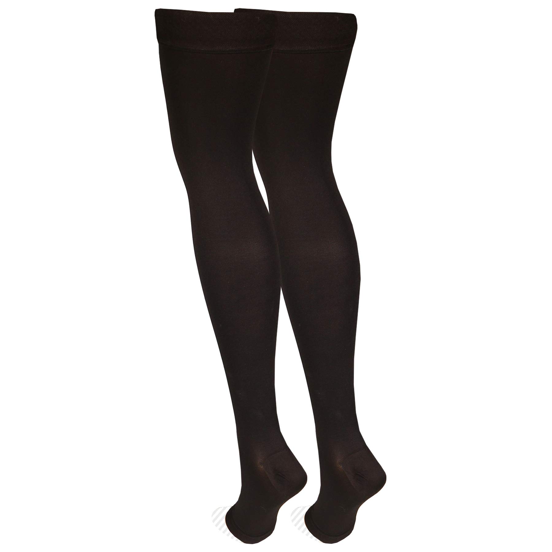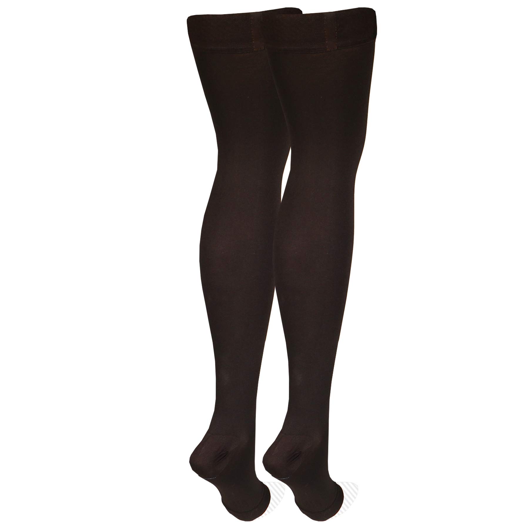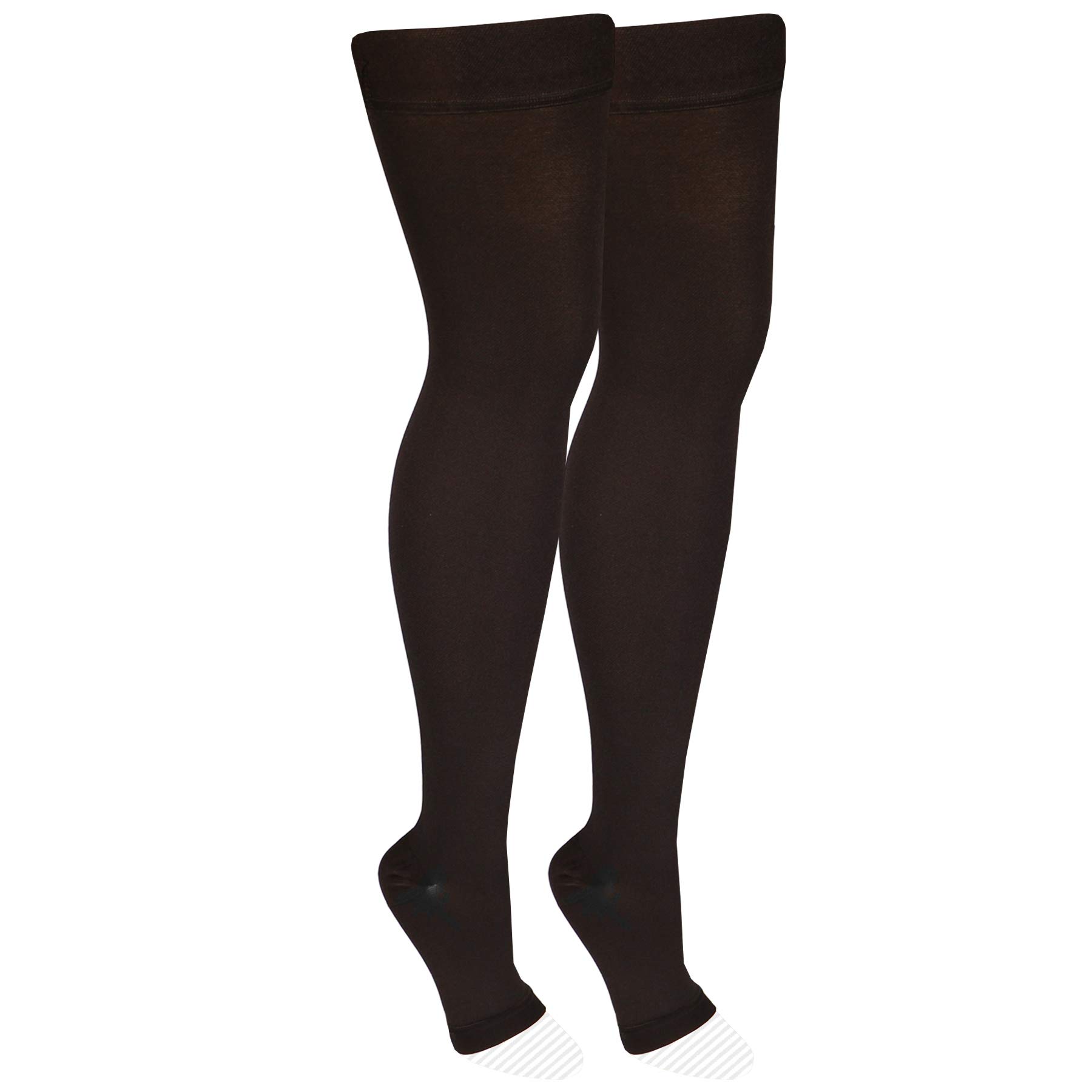 Product Description NuVein thigh length open-toe medical style compression stockings are made in the USA. Classic unisex fit for Men and Women puts healthy legs first. Therapeutic graduated compression helps restore proper blood flow and circulation. Made to hospital grade standards and suitable for everyday wear, NuVein relieves common vein conditions associated with age, lifestyle, or even just sitting or standing for long periods of time. NuVein hosiery can be worn by adults of all ages to treat and prevent cardiovascular stress, and helps manage common symptoms like: aching sore muscles and feet, or heavy feeling in extremities and toes. Rated "Extra Strength" (heavy pressure elasticity) the 20-30 compression level is measured in "mmHg" a unit of pressure, which indicates how tight the garment will feel. A 20-30 mmHg compression level are for users patients suffering from: DVT, Edema, Varicose Veins, Sclerotherapy in Lymphatic System, Laser Vein Ablation, Thrombosis, and EVLT Endogenous Radiology. Always confirm the correct compression strength prior to purchase. Increasing compression strength will impact application and feel tighter (if the garment is difficult to apply it does not mean the size is incorrect, most likely, this signals the incorrect level of compression). NuVein medical style hose are knit with a durable opaque fabric that conceals topical bulging veins. Closed toe options have an oversize toe box meant to allow increased movement of toes, and ensure sensitive conditions such as hammer toes, blisters, bruising, bunions and corns are not irritated or compressed together. The ideal use case is users needing a medical product for recovery and optimal circulatory health. Open toe models allow easy toe inspection and permit a standard size to fit a variety of foot length dimensions. Measure when swelling is at a minimum. Sold in pairs. Manufacturer Contact Information 3960 Rosslyn Dr, Cincinnati, OH 45209