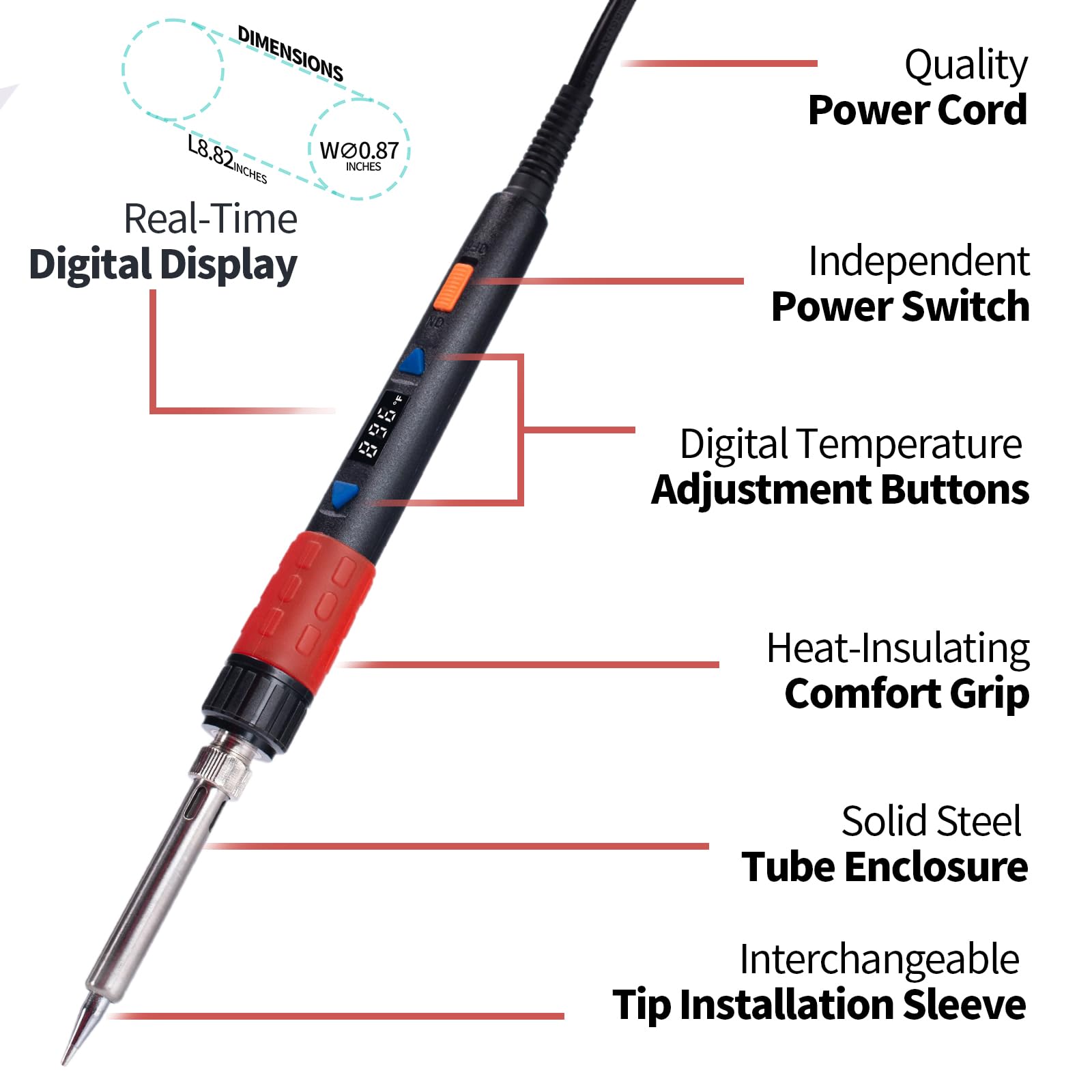 Clear Digital Display and Power Switch - The Display shows your every temperature adjustment clearly while the power switch ensures greater safety for each work, you can turn OFF the soldering iron even when plugged in. To give you a safe soldering experience, the X-4 holder comes with a wider and more stable base to prevent toppling.