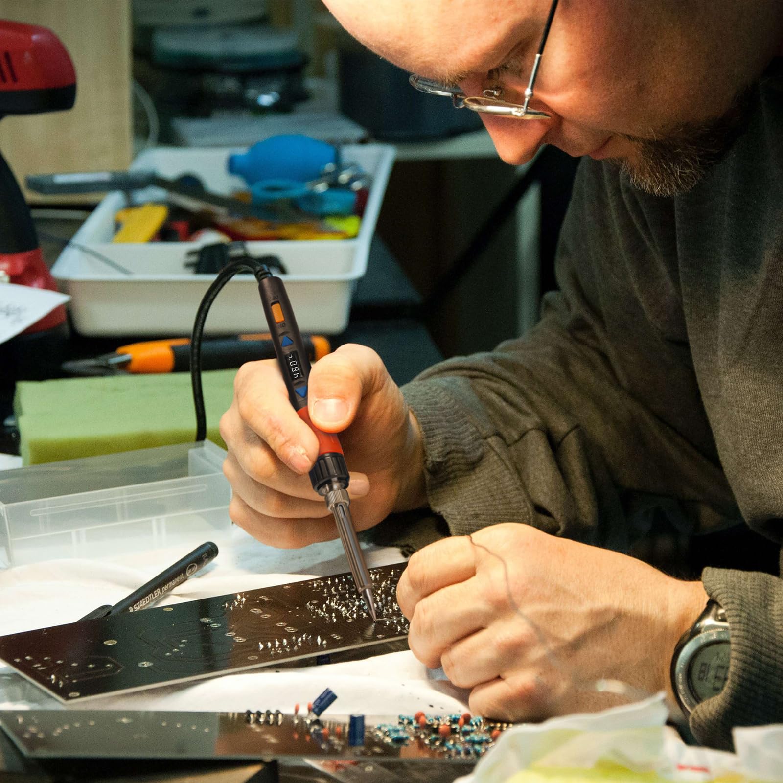 Take It and Its Functions Everywhere - It is an exceptionally portable soldering iron (only 197g /0.43 lbs ). With Sleep function, Digital Temp. Correction and °F /°C display applied. Portable and Capable.