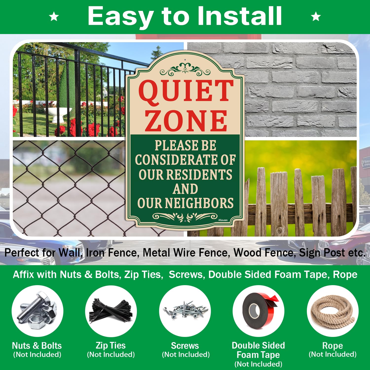 [Easy to Install]: The rounded corners and burr free corners of Quiet Zone Signs have been safely treated. 2 Pre-drilled Holes, for Easy Mounting is Standard. Suitable for house, yard, street, garden, company and Other Areas