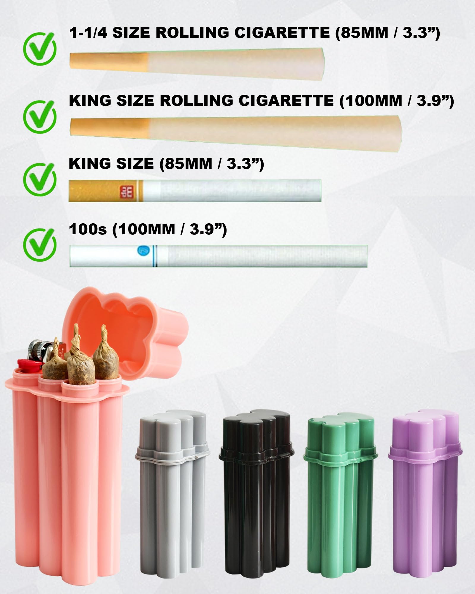 【 SIZE & CAPACITY 】: The size of FISH&FAIRY 100s cigarette case is: 1.2'' x 1.8'' x 0.7'' and weighs only 1.2 oz, it can easily hold 4 regular size or king size cigarettes and 1 bic lighter. Perfect for cigarettes made from 1-1/4 size pre rolled rolling paper.