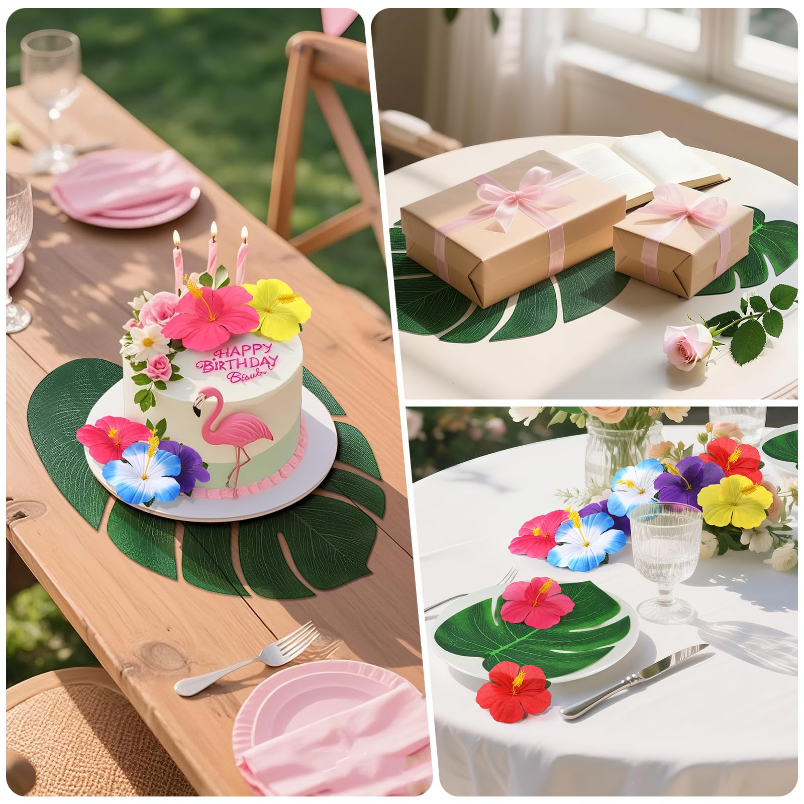 TROPICAL PARTY DECORATIONS SUPPLIES: Perfect for Luau party table, Beach party, Tropical themed party, Hawaiian themed party. Put them on at table confetti, graduation, wedding, baby shower, performance etc, become more eye-catching, add festive feel to parties. Soft and lightweight, good choice for table decorations, wall decoration and so on. Create an authentic tropical island atmosphere