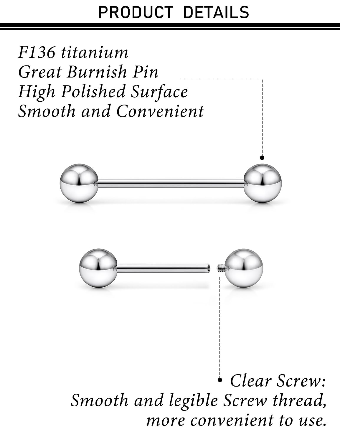 PACKAGE:16G Hypoallergenic Nipple Piercing Jewelry with G23 Solid Titanium Material, Classic and Simple Design, Suitable for Daily Wearing.
