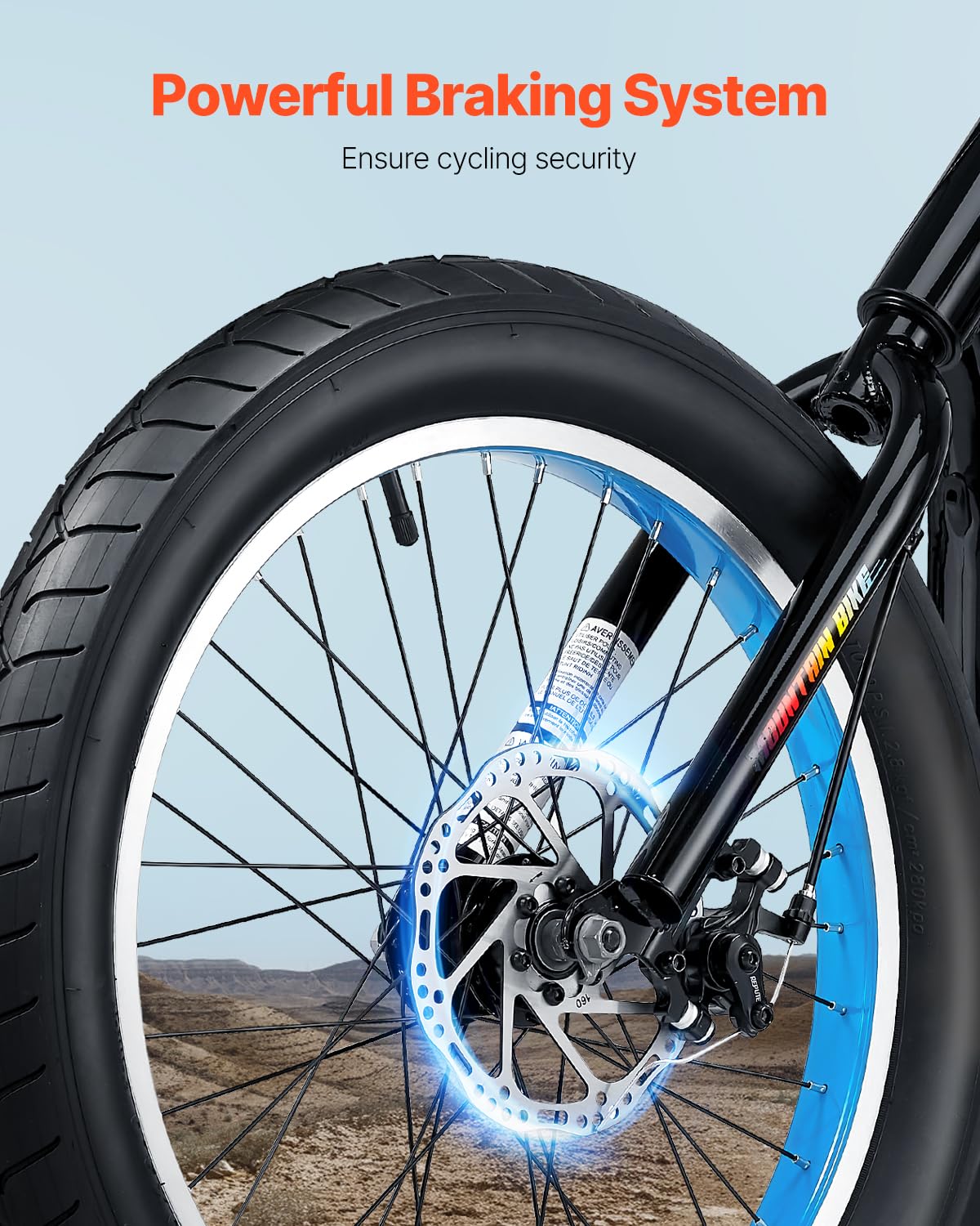 Wide Tires: Featuring 20-inch wide tires, this mountain bike provides excellent traction and stability. Ideal for a range of activities, from park rides and countryside adventures to daily commuting, ensuring a secure and fun cycling experience
