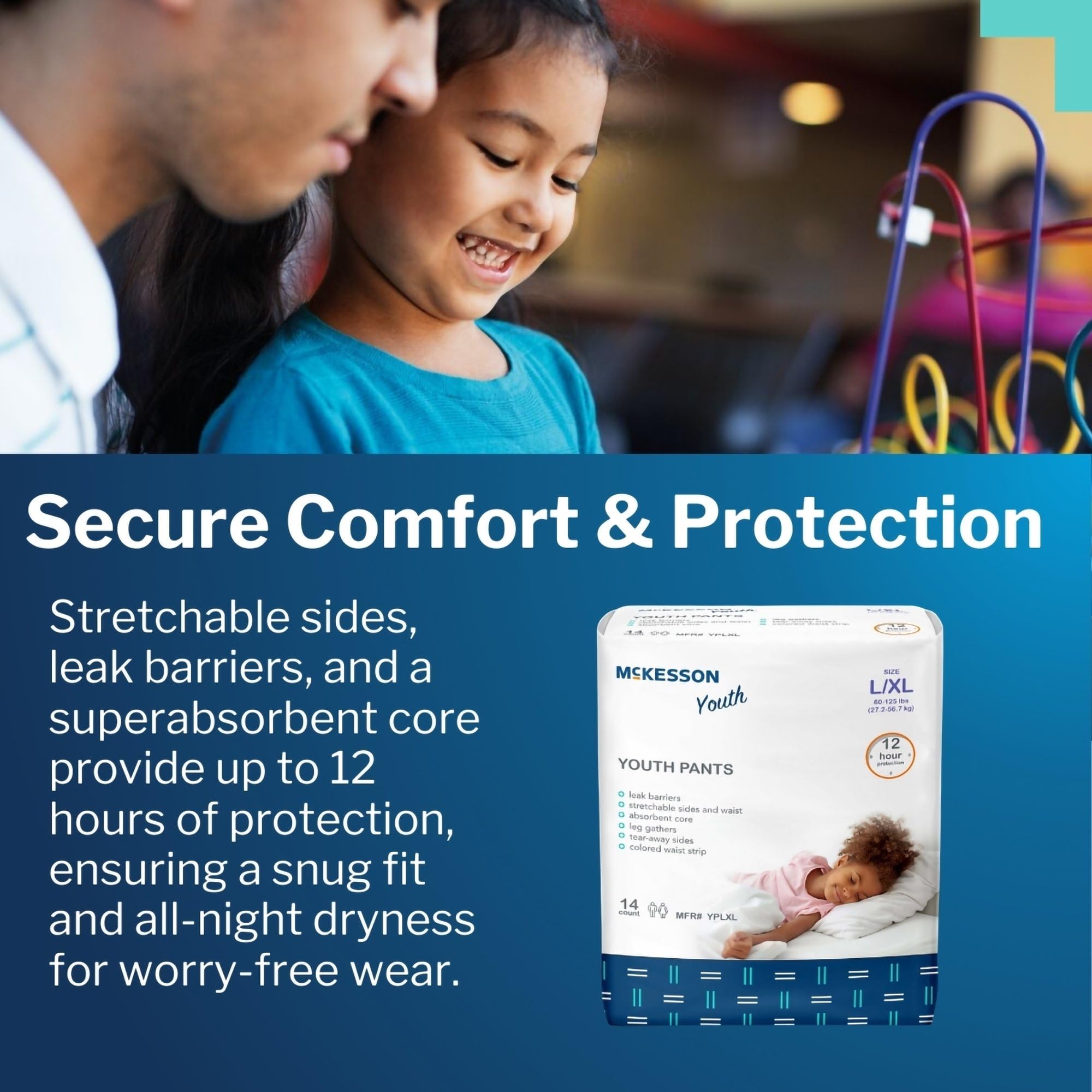 Featuring a super-absorbent core that protects for 12 hours, these training pants are great for all-day or overnight use