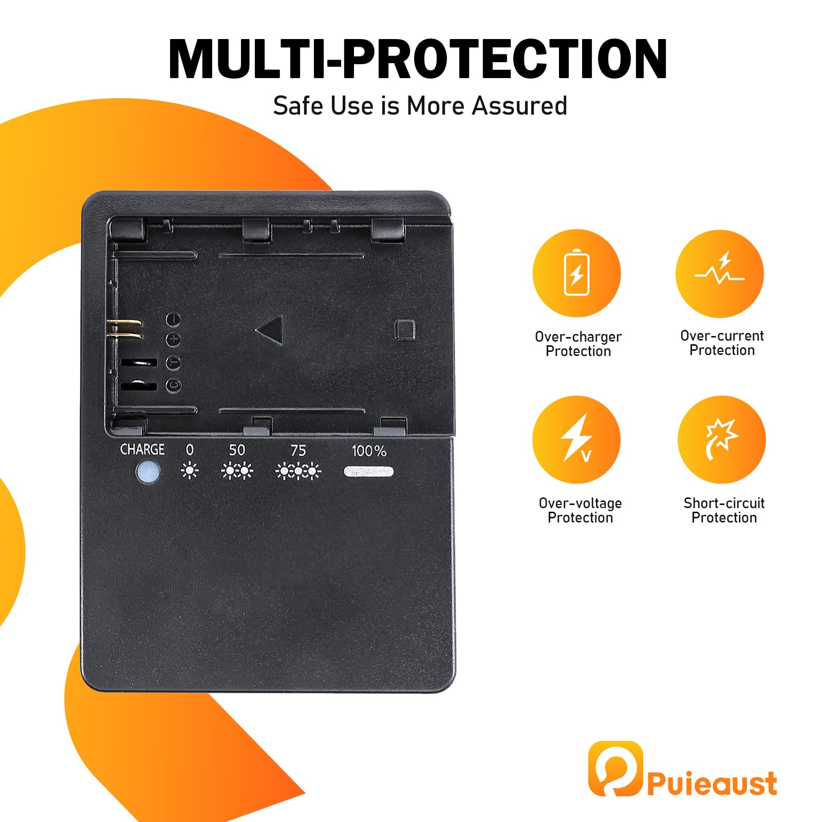 SAFE CHARGING: The LC-E6 battery quick charger provides safe, fast and efficient charging for Canon camera equipment. The internal intelligent circuitry provides multiple layers of protection for your battery (overcharge, short circuit, high temperature, surge protection). Not only does it effectively improve charging efficiency and provide backup power for long shooting sessions. It also greatly reduces battery wear and tear and extends the life of the battery