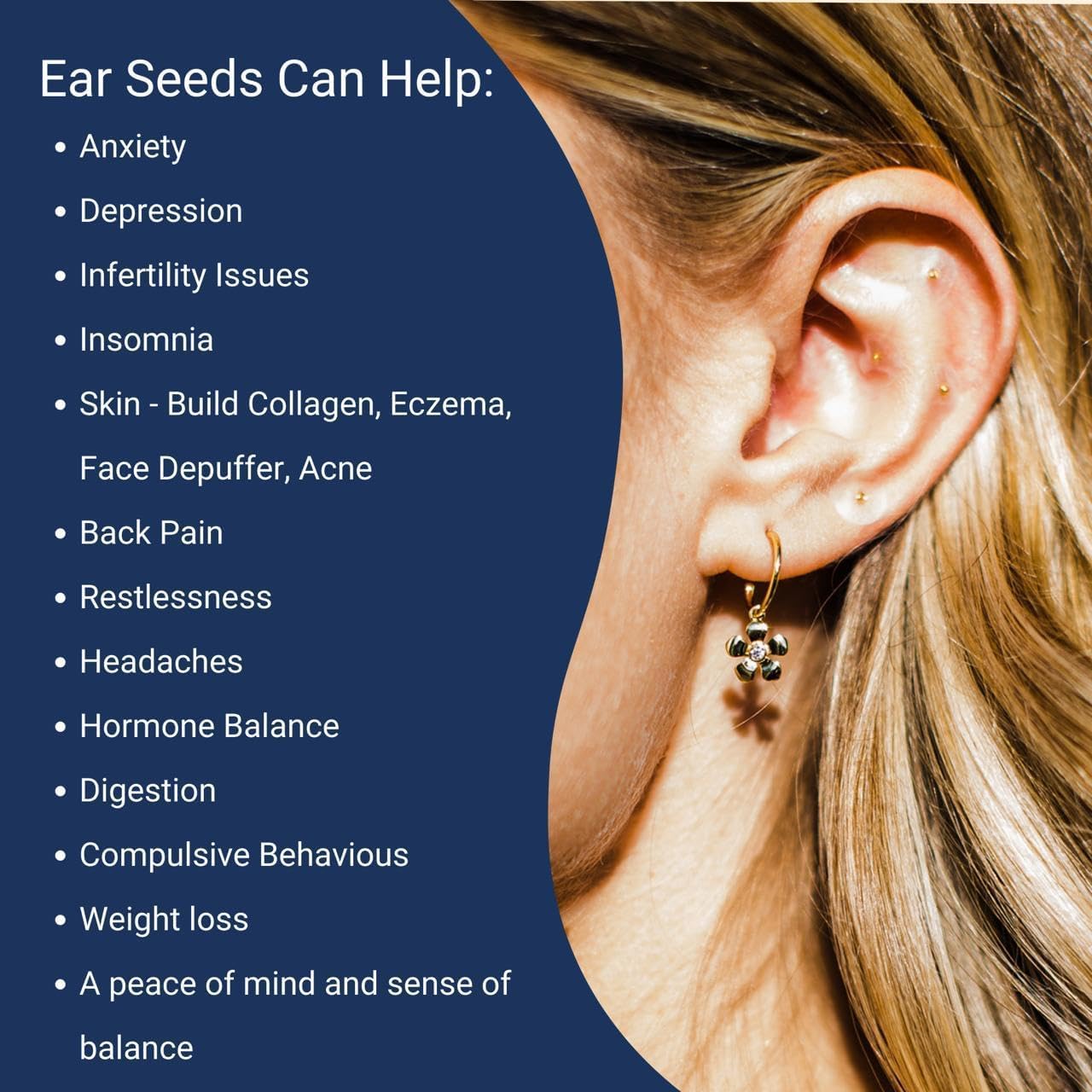 NAO Wellness: Ear seeds are adhesive seeds from the natural Vaccaria plant placed on specific acupressure points on the ear to address specific symptoms and areas of the physical and emotional body. This holistic treatment is called auriculotherapy. Auriculotherapy, with its origins in Traditional Chinese Medicine, is a treatment modality used for thousands of years across diverse cultures.