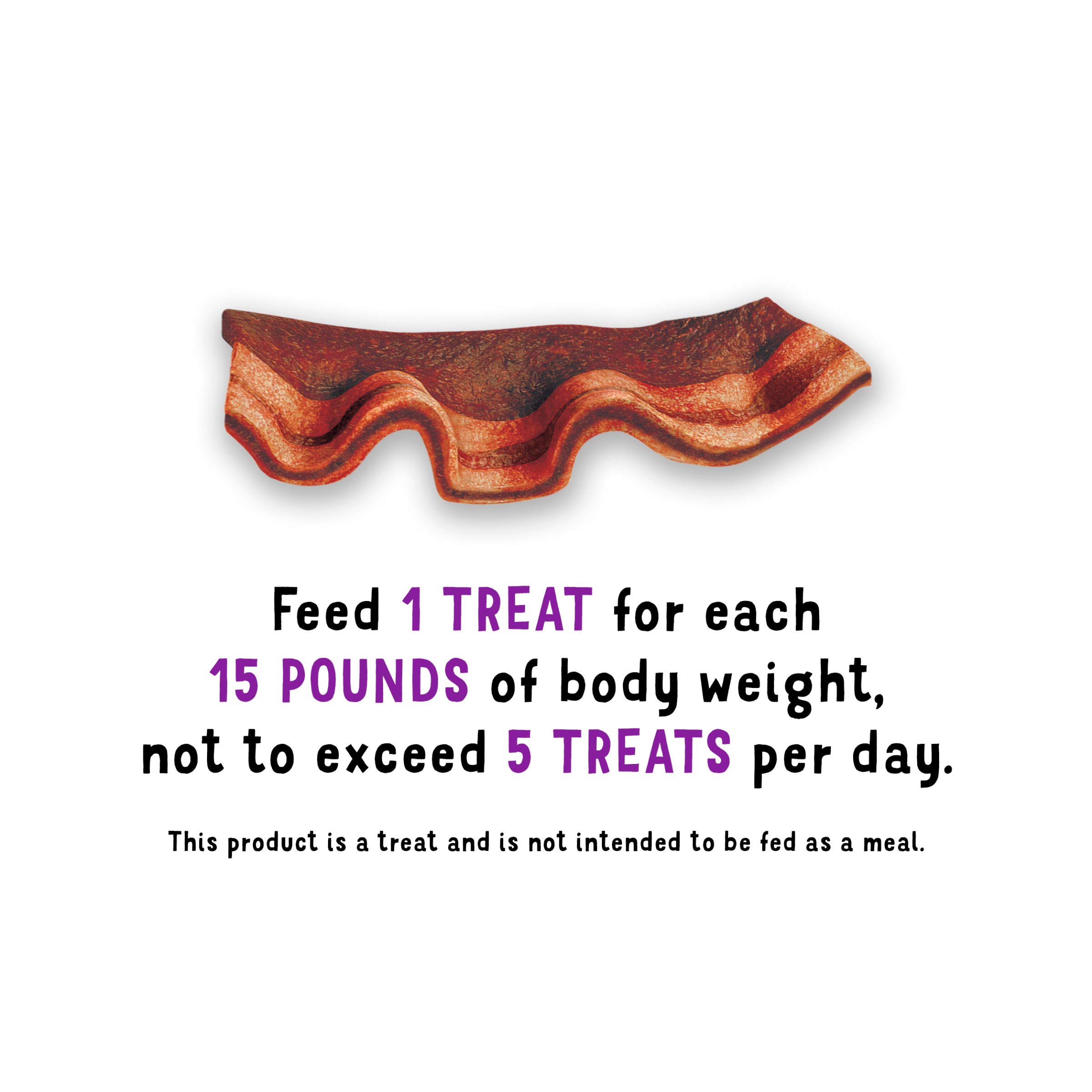 Pet snacks for dogs with a bacon-inspired shape, texture and aroma for a unique treating experience