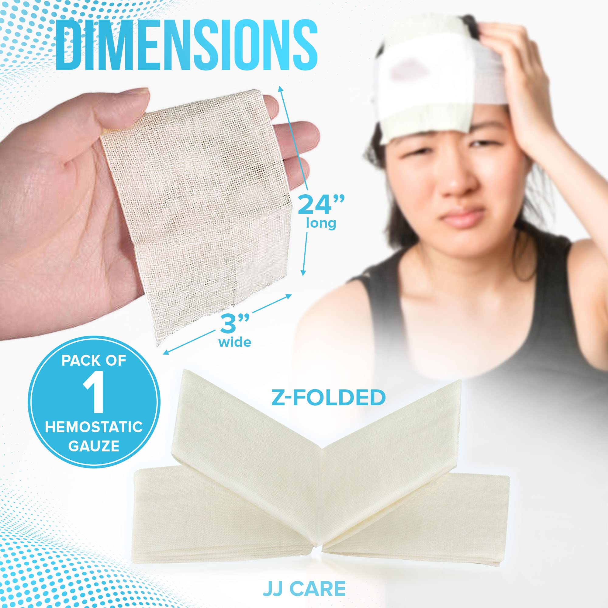✅ EFFICIENT MAKE – Every hemostatic dressing purchase comes in a vacuum-sealed sterile packaging. The knitted fabric is z-folded in a white/light yellow color. The 3 x 24 inches bandage makes fast bleeding control easier since it can be applied as it is or cut to necessary sizing.