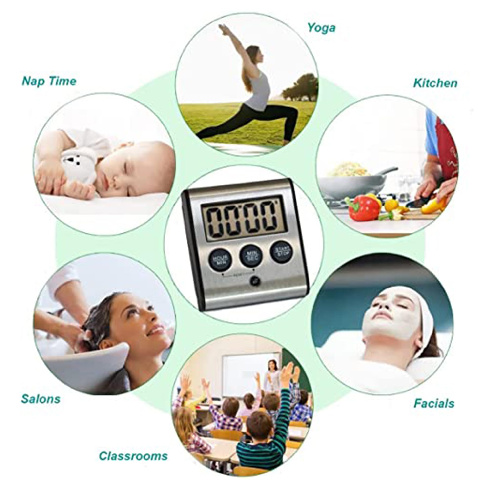 Convenient Battery Saving Auto Shut-Off Feature: Engages when timer is idle and not being used for 3 minutes. Press any button to turn timer on. We’ve had reports of batteries lasting for years. (1) AAA Battery included. A Favorite: medical, dental, classroom, fitness & salon timer. Perfect countdown timer for kitchen, bathrooms, exam rooms, bbq grilling, baking, cooking, sports, games, study, time outs. physical therapy sessions, gym work outs, or hair color.