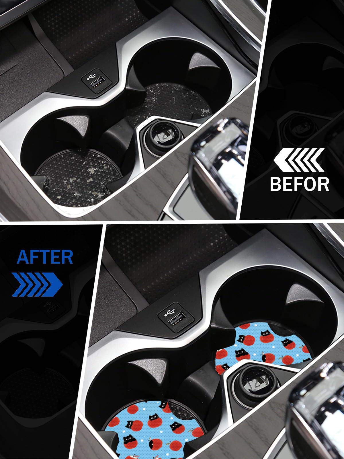 The car cup coasters super cute and keep all our cup holders clean all while protect our car and are absorbent