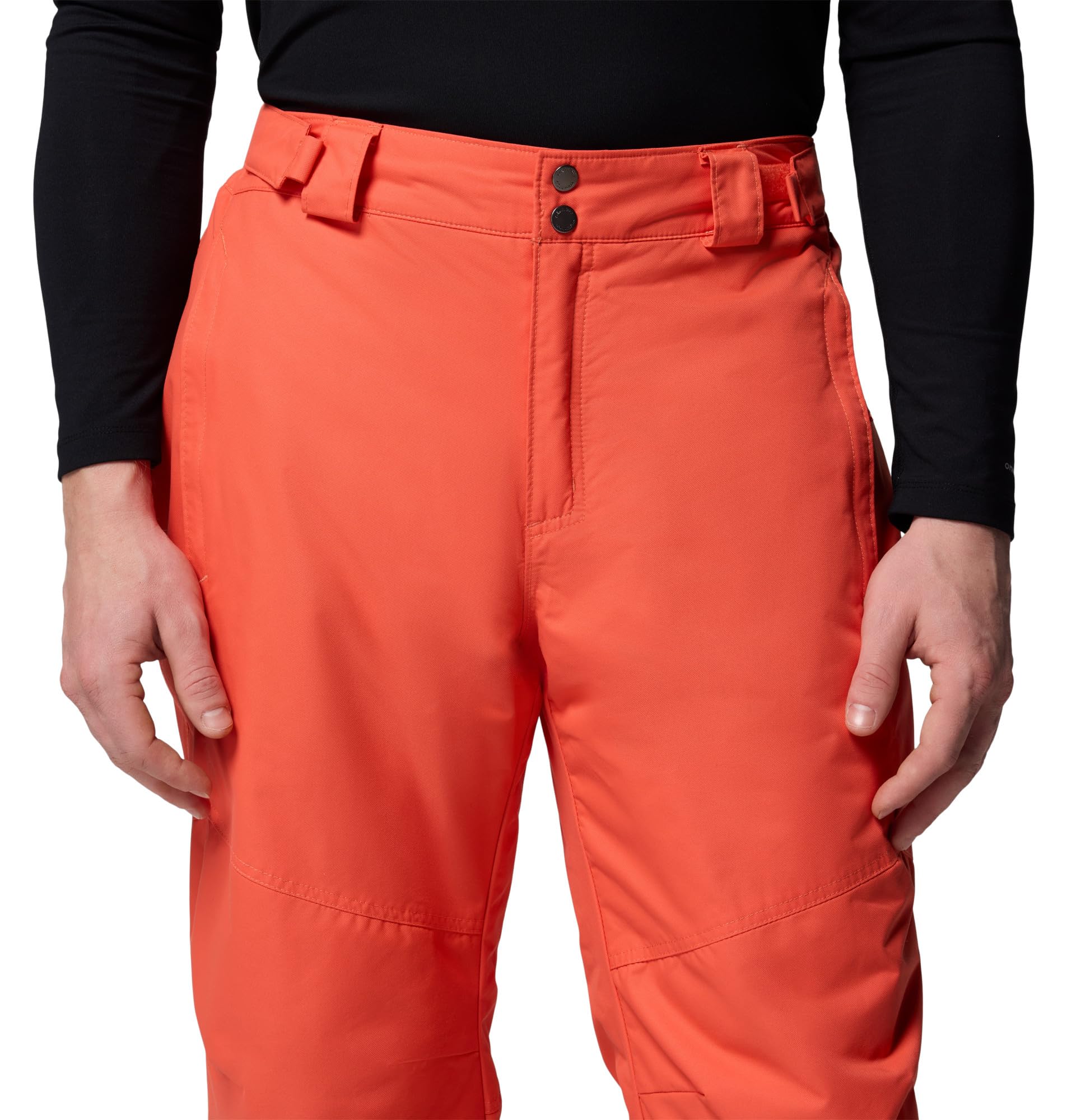 Description Insulated and waterproof, these Columbia men’s snow pants will keep you warm on the slopes. They’re critically seam-sealed to keep moisture out, with a thermal-reflective lining that helps hold heat in. Columbia offers these pants in multiple colors and sizes. Extended sizing available. Available in various inseam lengths. Regular fit.