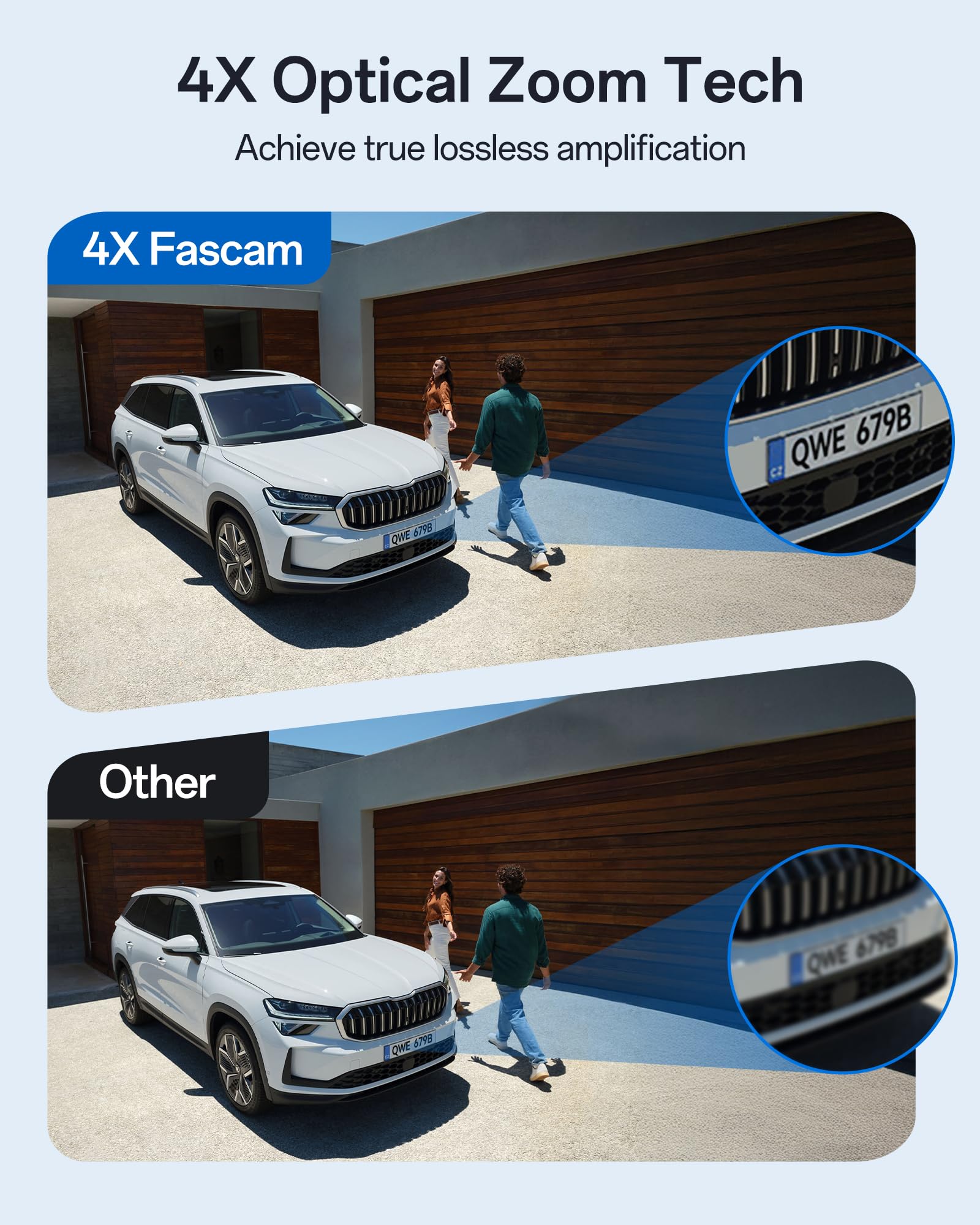 【Ultra-Clear 2K Imaging with 4X Optical Zoom】As a high optical zoom security camera, this surveillance camera captures sharp 4MP video (2560×1440@20fps) with an f=2.8-12mm lens & F1.8 aperture for clear low-light visuals. The 4X optical zoom zooms in without pixelation. Auto focus, HD color CMOS sensor & H.264+ compression ensures crisp footage day/night, while adjustable brightness, contrast & saturation let you customize visuals for warehouses, driveways, or large properties.