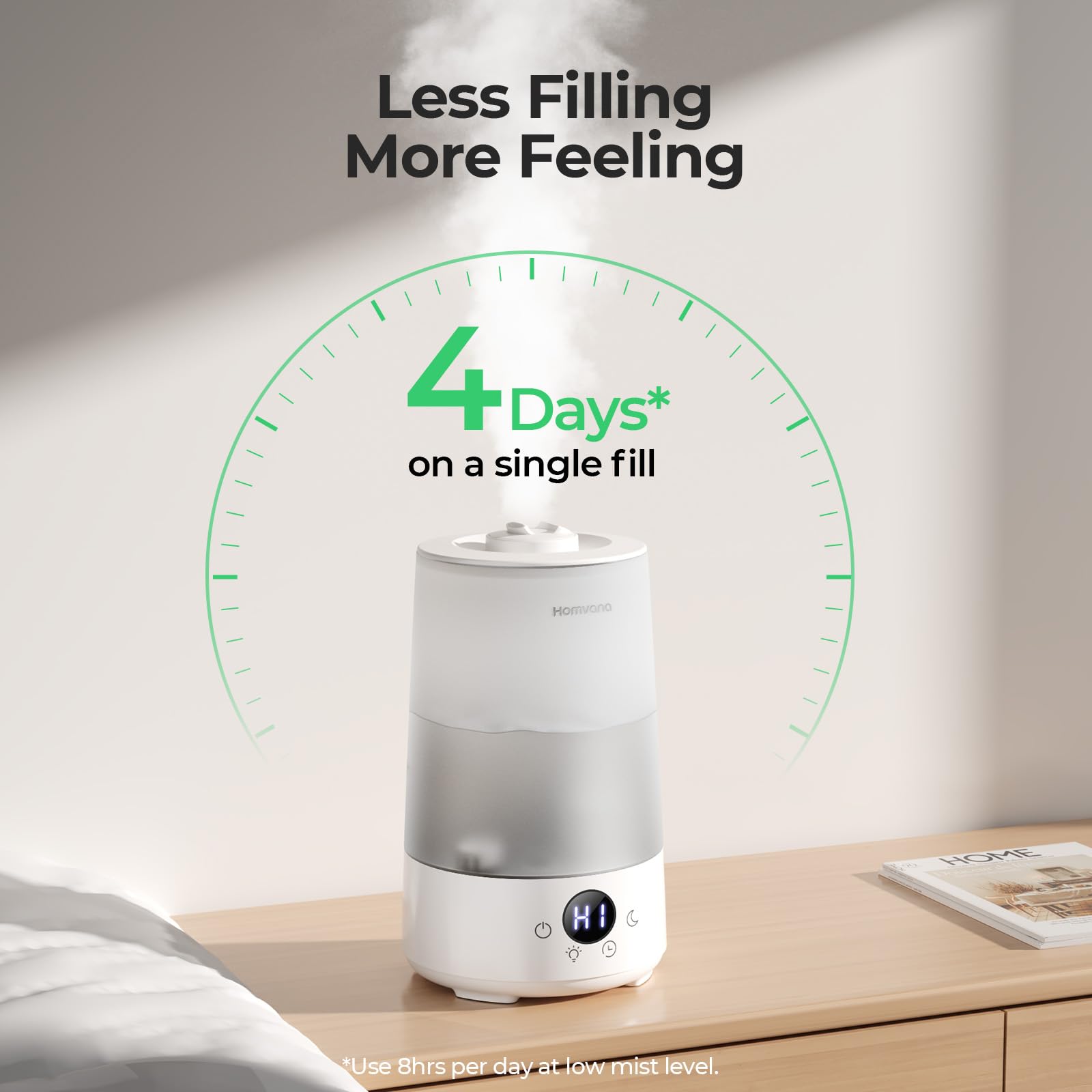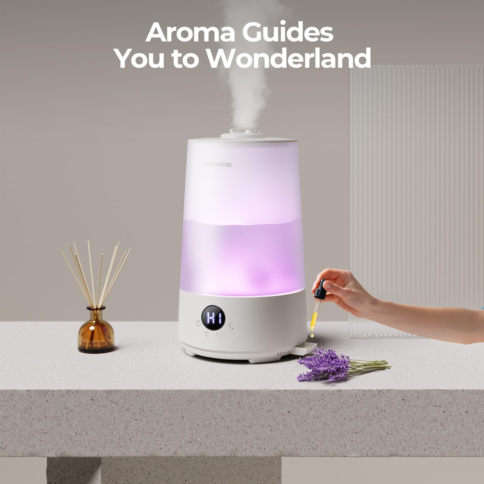 [3-in-1 Humidifier Meets All You Expect] Cool Mist Humidifier+Aromatherapy+Mood Light, purchase for once to satisfy all you expect! Let Homvana H101 be the best companion in your bedroom.