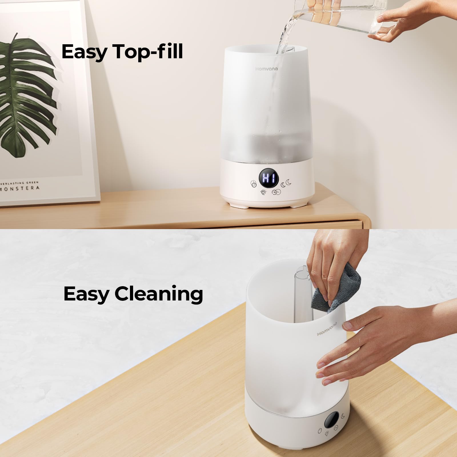 [Easy to Refill & Clean] The top-filling design which combines the detachable tank with the 5.3-inch wider opening, spares you from getting your table wet, making filling and cleaning as easy as a piece of cake.