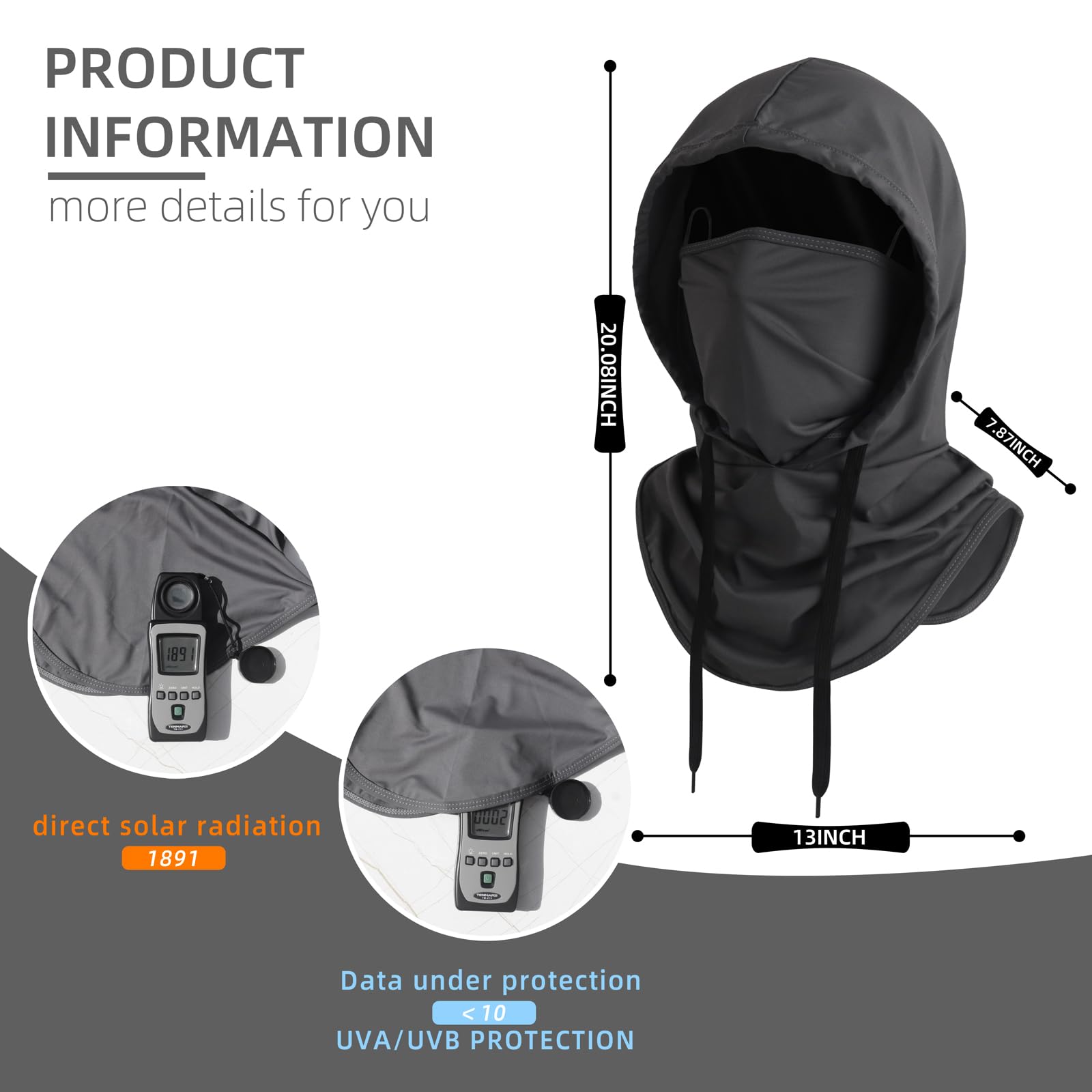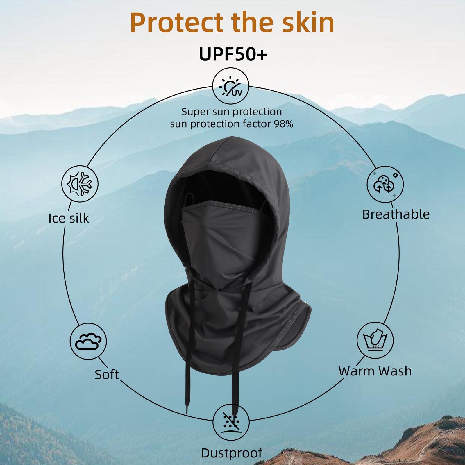 Breathable and Lightweight Hood Mask: This summer hood mask is made of high quality and soft material,which is Breathable, Lightweight,Skin-Friendly, Quick-Drying fabric keep you dry, cool and comfy in running, fishing, workout.