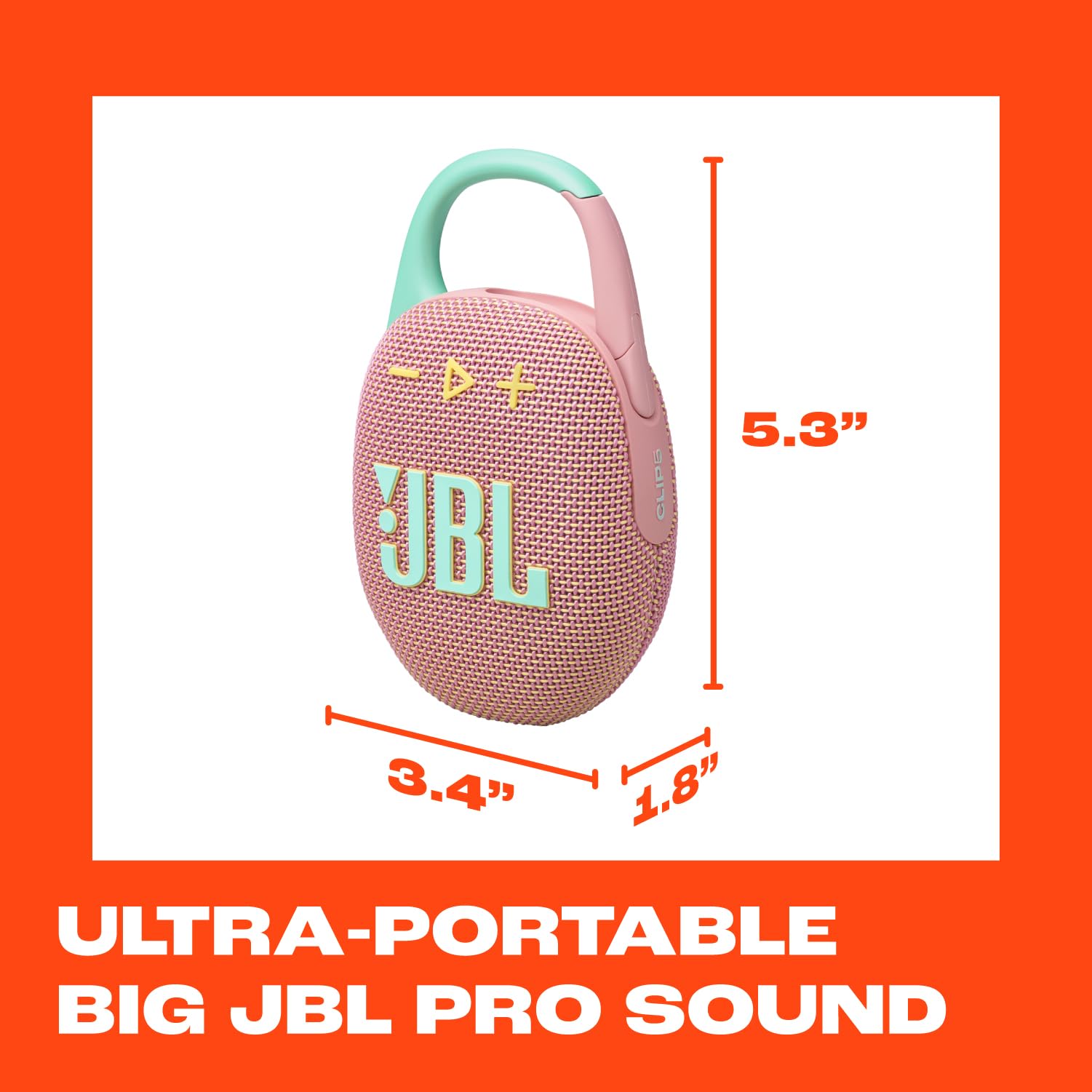 Ultra-portable JBL Pro Sound: Don't let its little size fool you. The JBL Clip 5 packs a serious musical punch, delivering big JBL Pro Sound with punchy bass. Your friends won't believe how much great JBL Pro Sound comes out of such a small speaker.