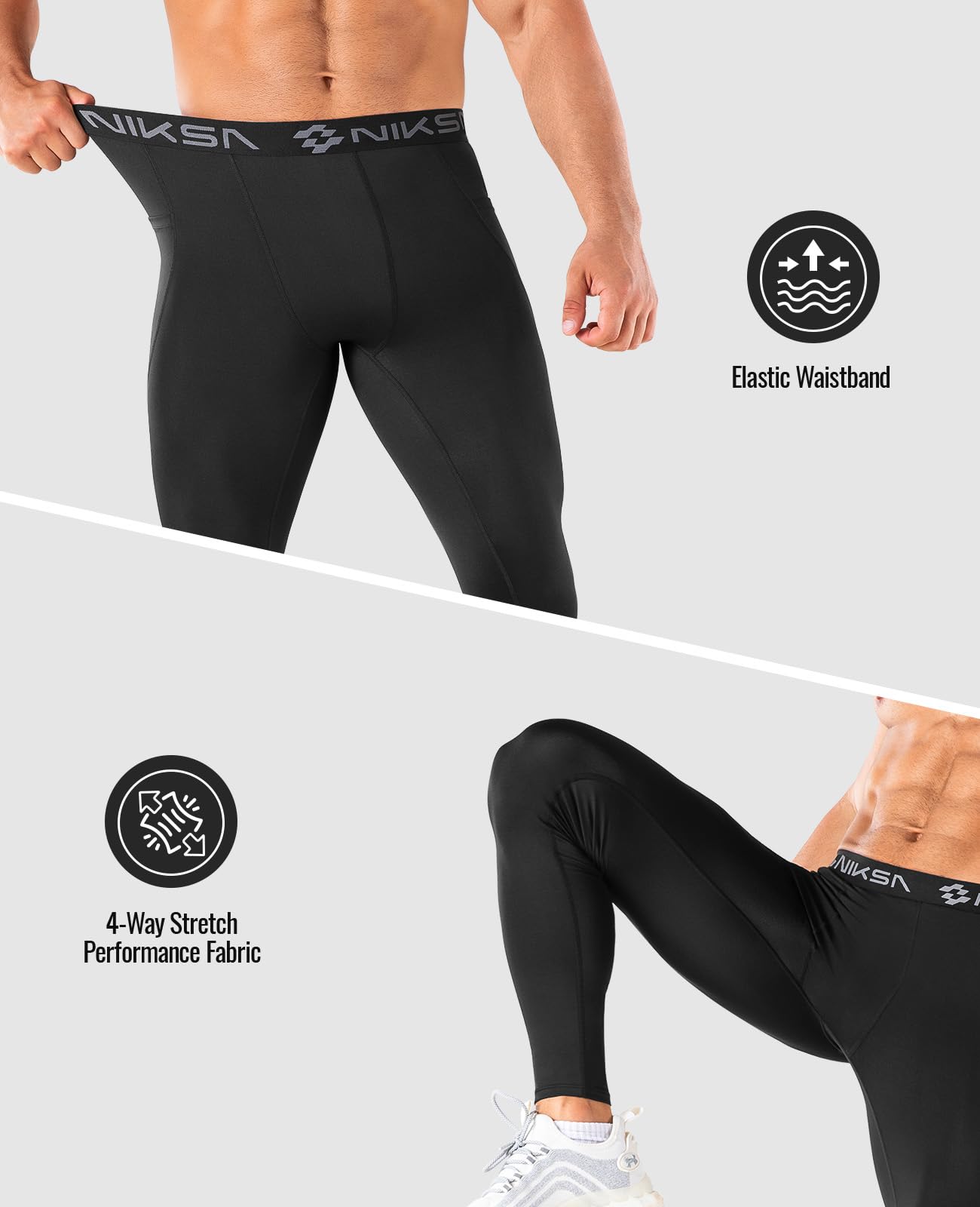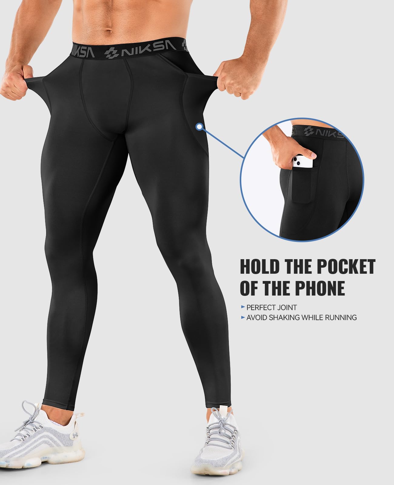 Designed for all seasons and sports: Mens leggings for sports provide sun protection for outdoor activities like running, cycling, hiking, surfing, skiing, and climbing as well as indoor activities such as weight training, squats, gym sessions, yoga, and more