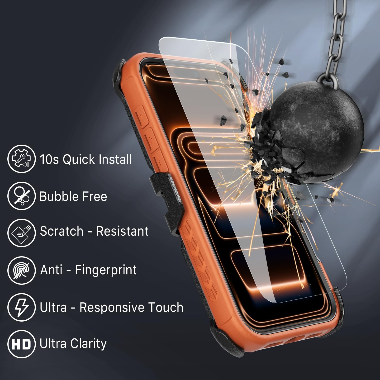 Extra Layer of Protection Case for 17 Pro Max: The 1.6mm raised screen lip not only shields the display from collisions and scratches but also ensures a smooth, comfortable grip without bulky protrusions during daily use. Complete with a Tempered Glass Screen Protector, it effectively defends the screen against fingerprints, smudges and scratches. The texturized bumper grip prevents the phone from slipping out of your hands, reducing the risk of accidental drops and slips.