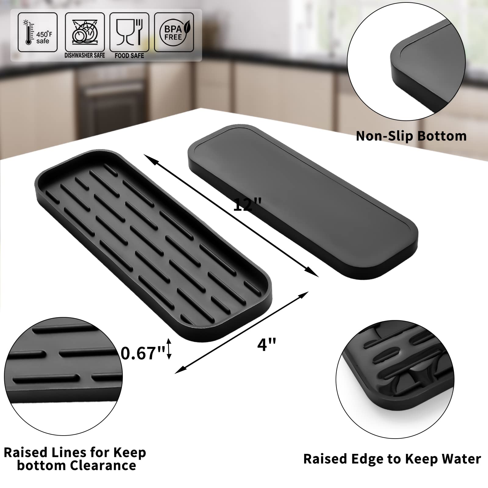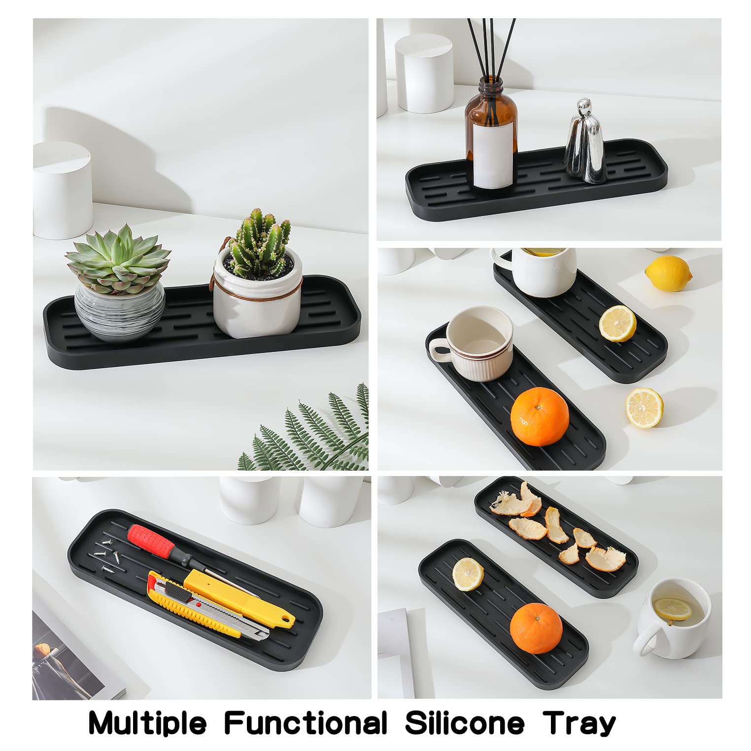 RAISED EDGE & NON-SLIP BOTTOM:The non-slip bottom design can make the silicone organizer tray stable on the sink or countertop.The 0.67-inch high raised edge keeps water or other dirt overflow to keep your counter clean.