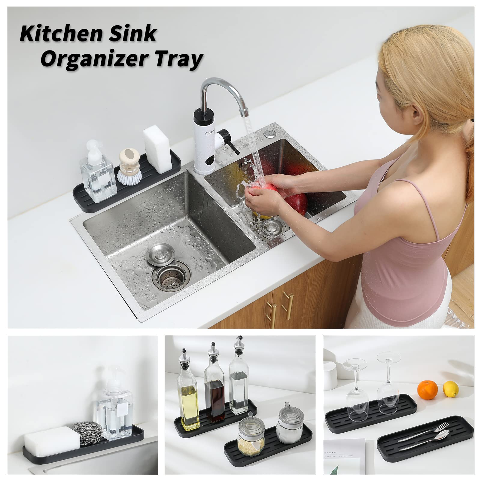 FOOD GRADE SILICONE: Features BPA-free, Eco-Friendly, the kitchen sink organizer tray made of quality silicone is more flexible and more durable,leaving you with clean and comfortable experience.