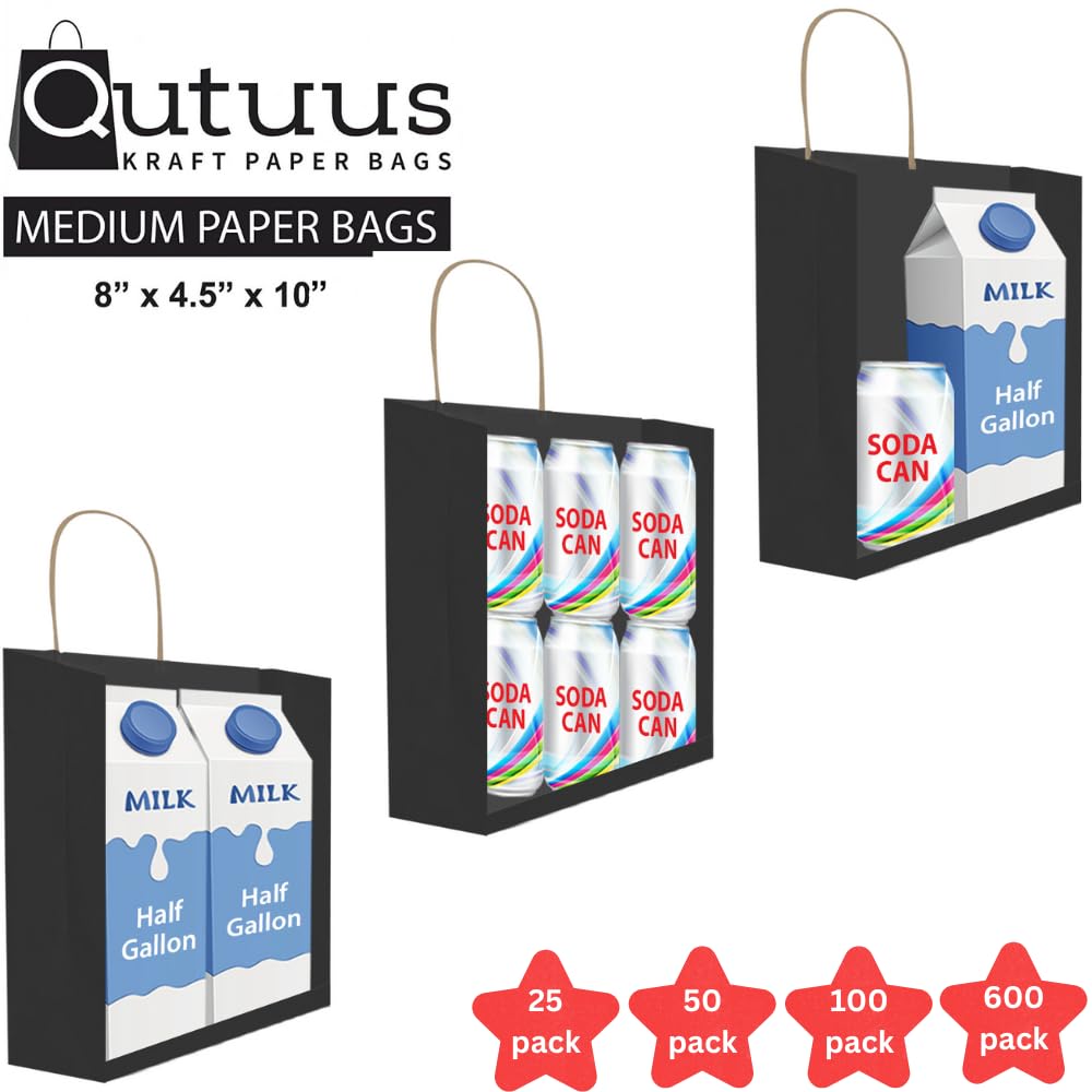 ♻️ MEDIUM SIZE MULTIPURPOSE PAPER GIFT BAGS : 25 pcs 8”x4.5”x10” craft paper bags are great for holiday gift bags, retails bags, merchandise bags, shopping bags, party bags, goody bags, favor bag, christmas bags and wedding welcome bags. Our kraft bags' size tolerance is +/- 0.25 inches.