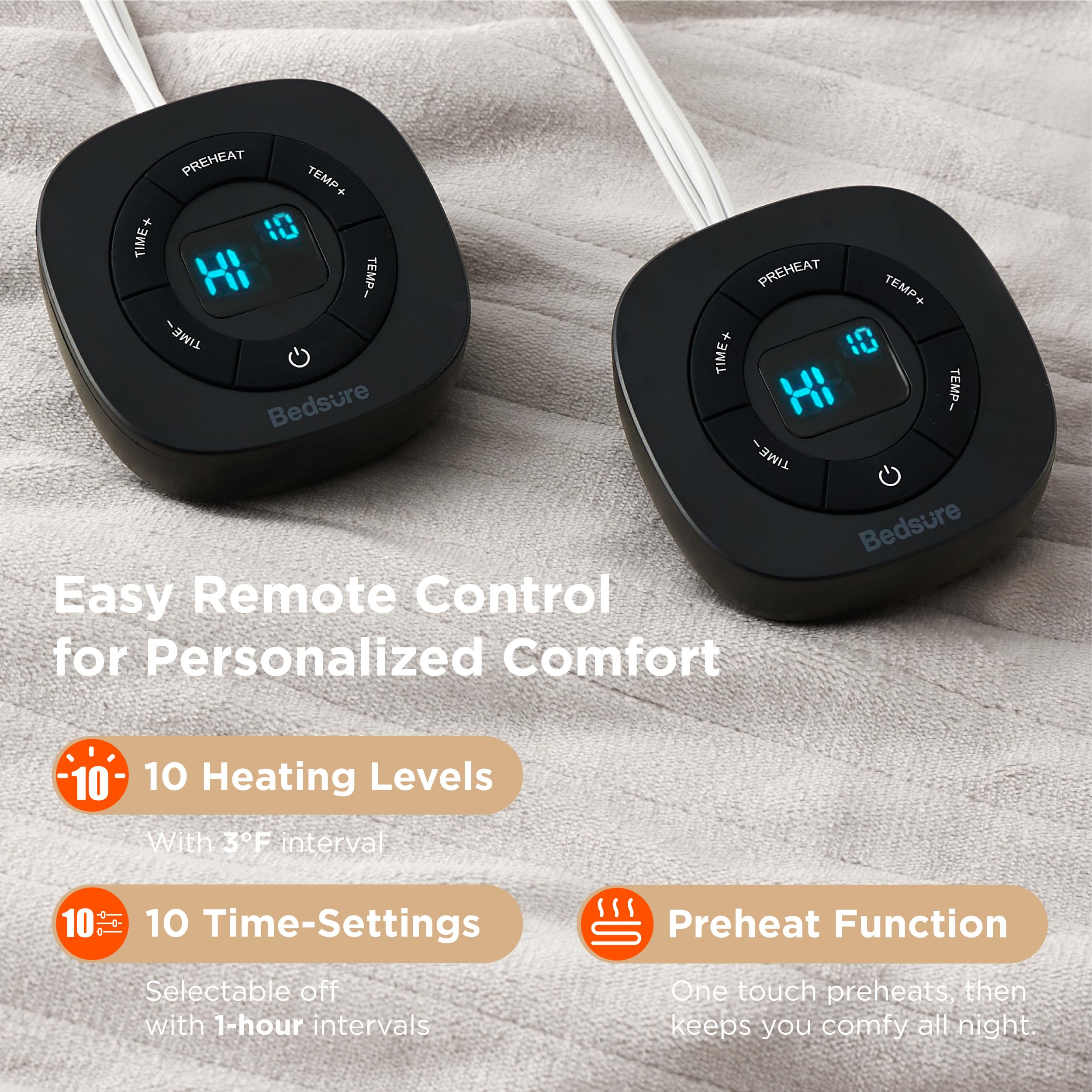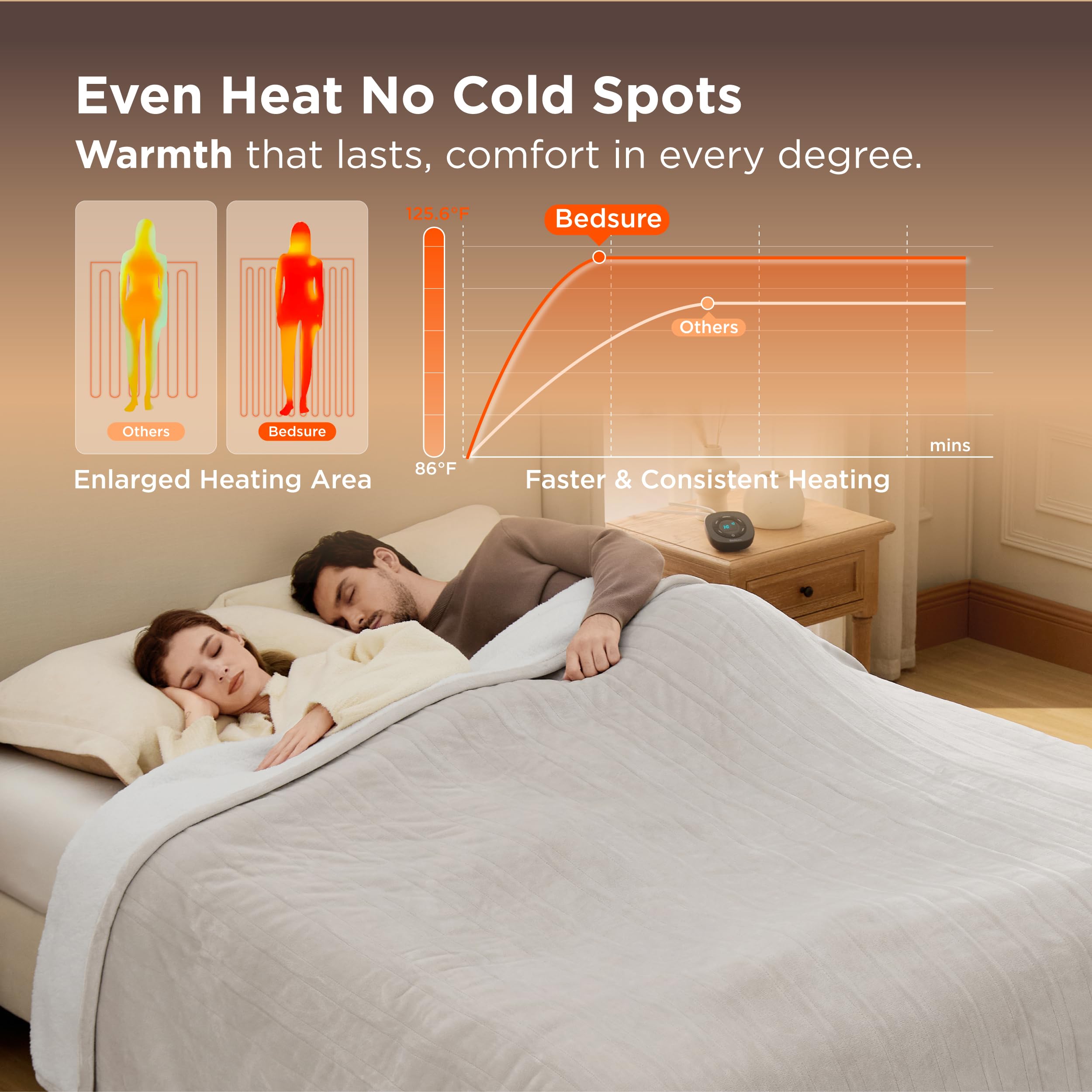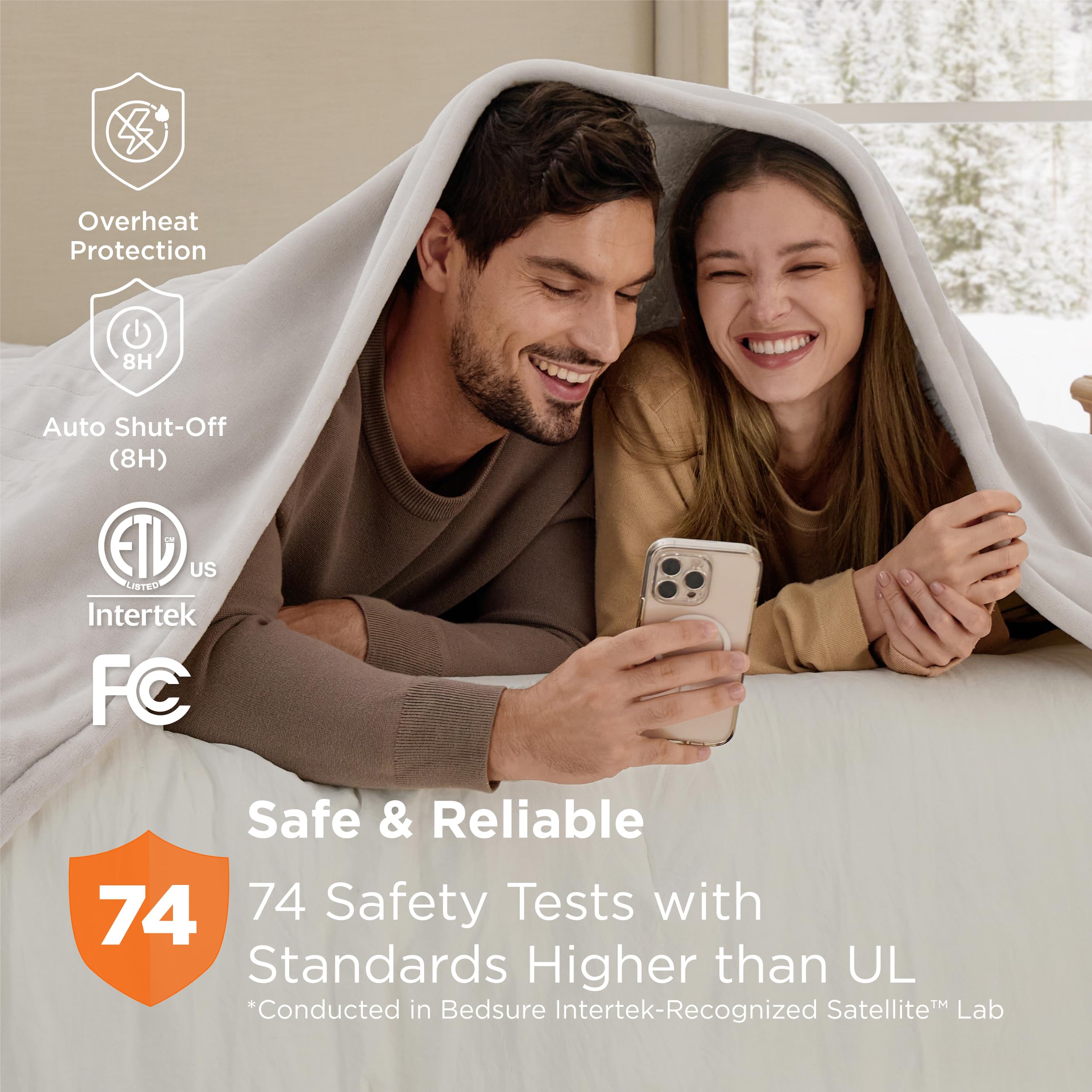 Safer & More Reliable: Conducted in Bedsure Intertek-Recognized Satellite Lab, 74 safety tests with standards surpassing UL ensure safer performance. This king size heated blanket is ETL and FCC certified, and its default 8-hour auto shut-off prevents it from overheating so that you can enjoy warmth with complete peace of mind