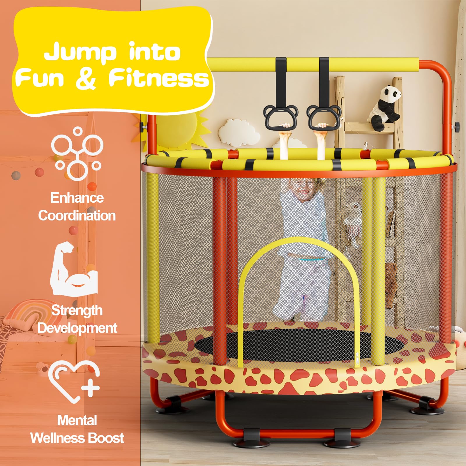 3-Level Gymnastic Bar - The adjustable gymnastic bar of toddler trampoline offers 3 height settings to challenge and grow with your child, promoting physical fitness and balance. Plus, it's removable for when your little one is ready to tackle other activities. With a weight limit of 440lbs, it's perfect for kids of all sizes.