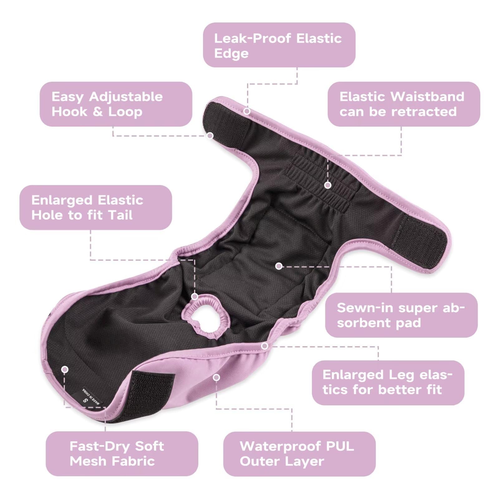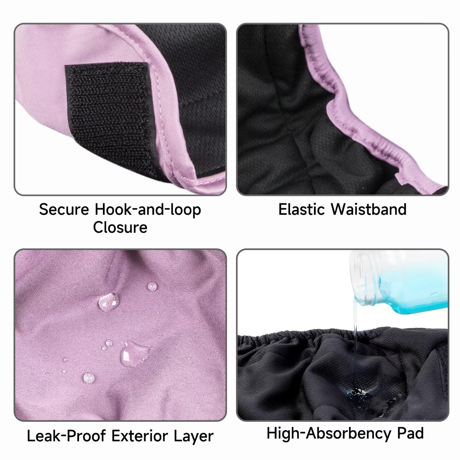 Leak-proof Design: Features sewn-in high-absorbency pads and fast-dry mesh fabric for breathability and comfort. The waterproof outer layer prevents leaks, controls odors, and ensures your dog stays dry and clean, preventing messes and accidents.