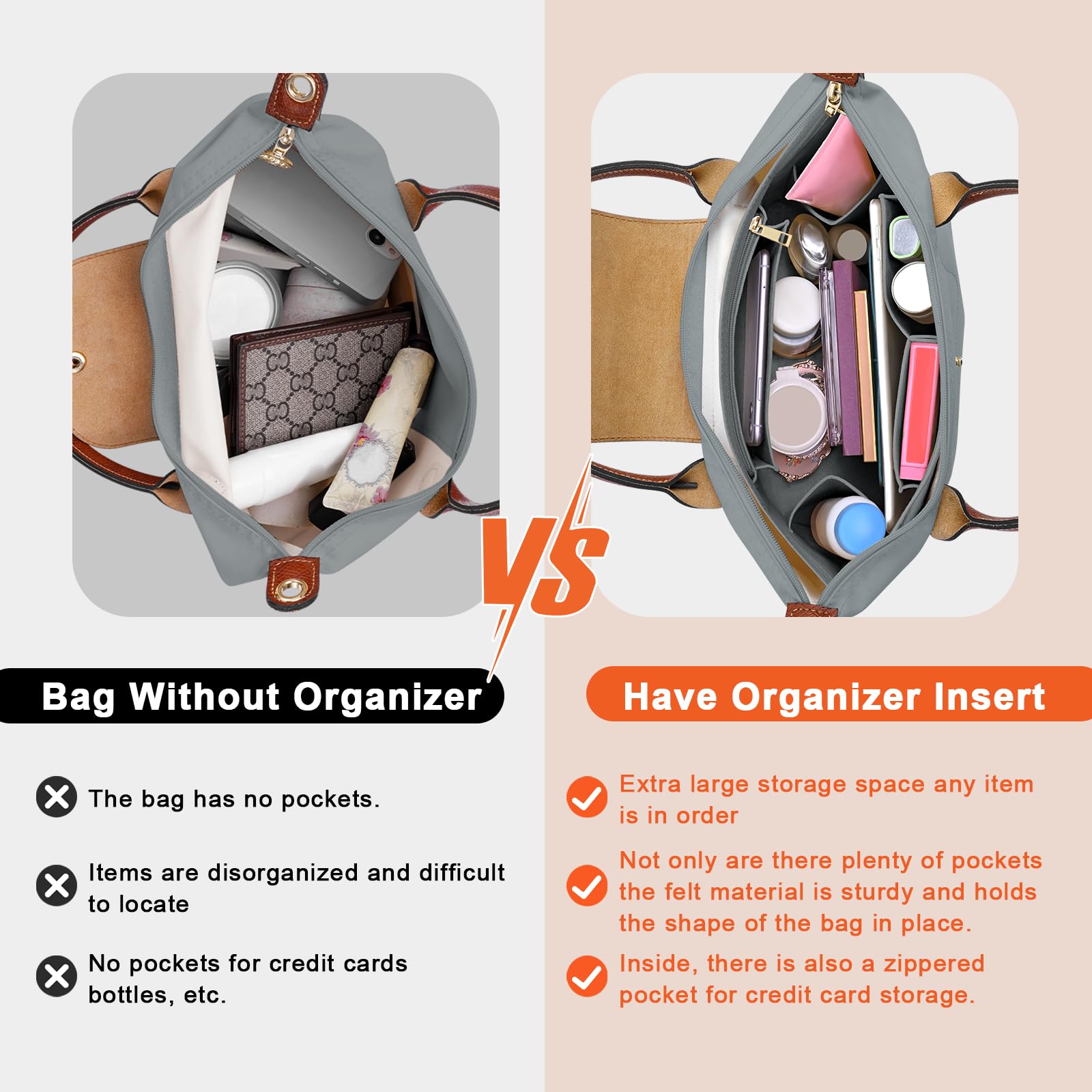 Organizer Same Shape as the Bag: An seperate Zipper Insert Which Helps Keep Your Valuable and Privacy Items Stored Well, And All Your Things Could Be Easy To Find. The Whole Tote Organizer is Also Sturdy Enough to Help Keep Your Bag In Proper Shape,IMPORTANT: This tote organizer is designed for Longchamp bags and does not include the bag, if you have a similar tote, please double check the size to ensure compatibility.