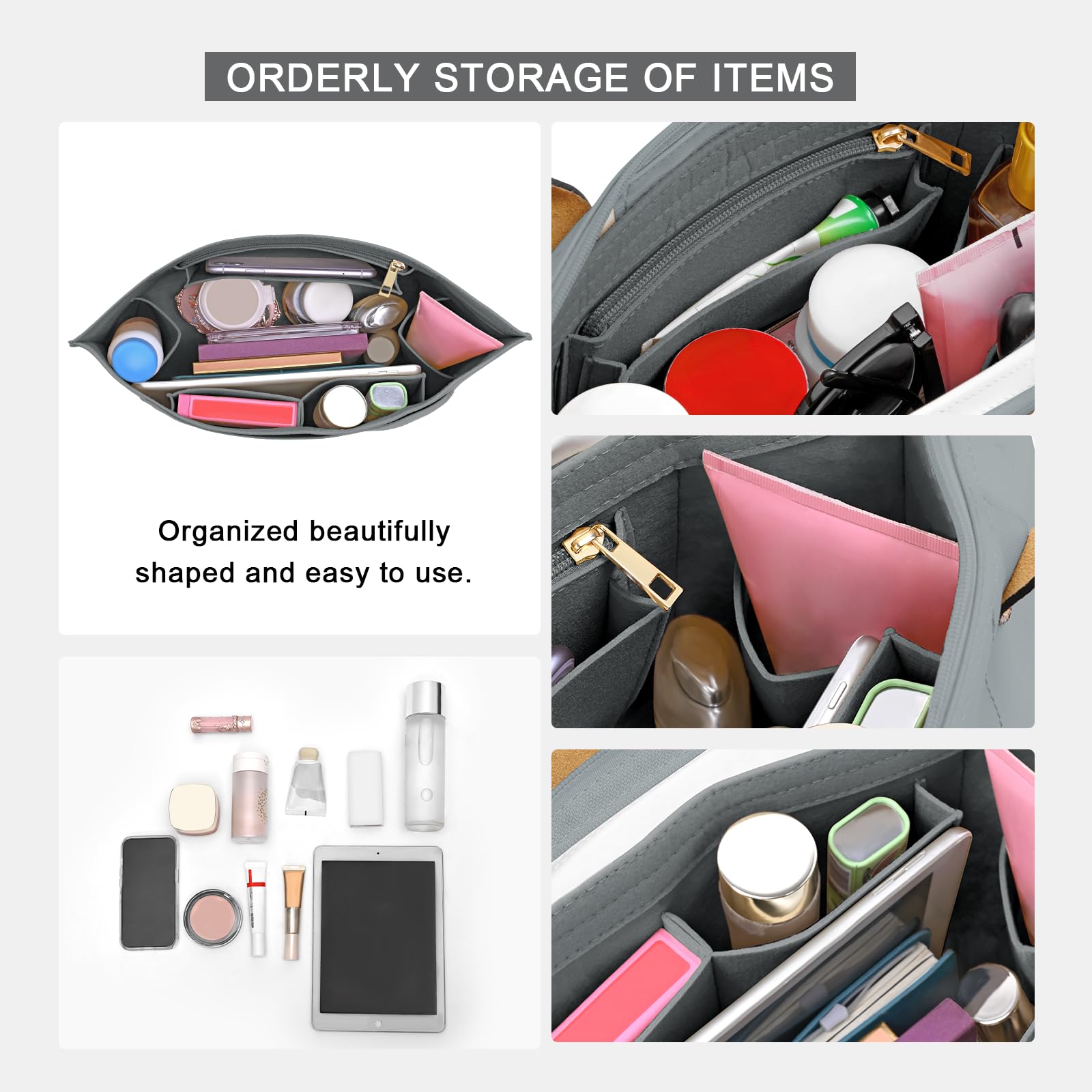 HIGH QUALITY FELT: The Organizer is made of high quality Thick felt material, Sturdy ,Soft and pliable, Lightweight. which can better protect the inside of of your tote bag.