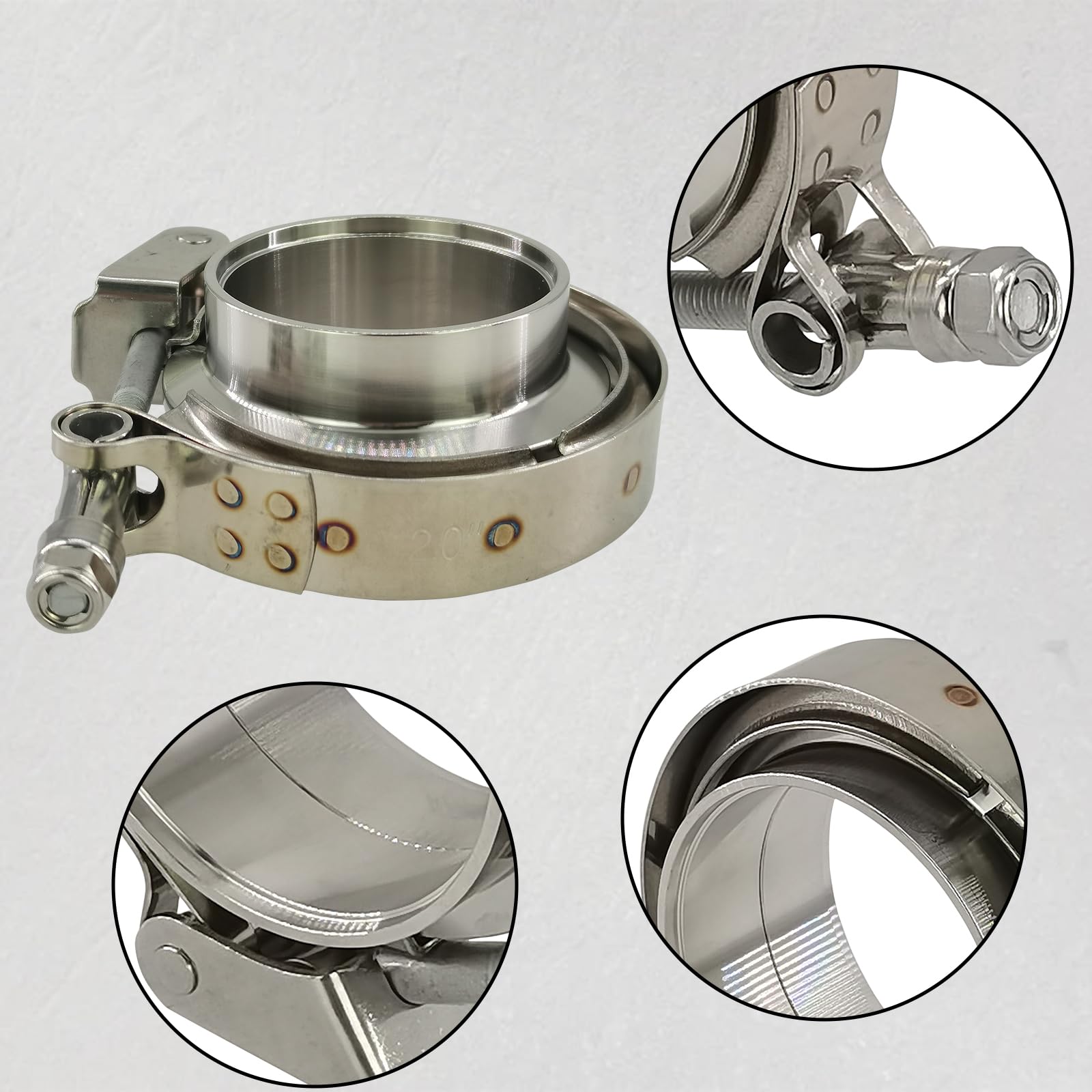 QUICK RELEASE DESIGN: this design of this 2 inch v band clamp is ideal for applications that require frequent removal. It can be connected and disconnected faster while providing a leak-free seal with even pressure at the flange.