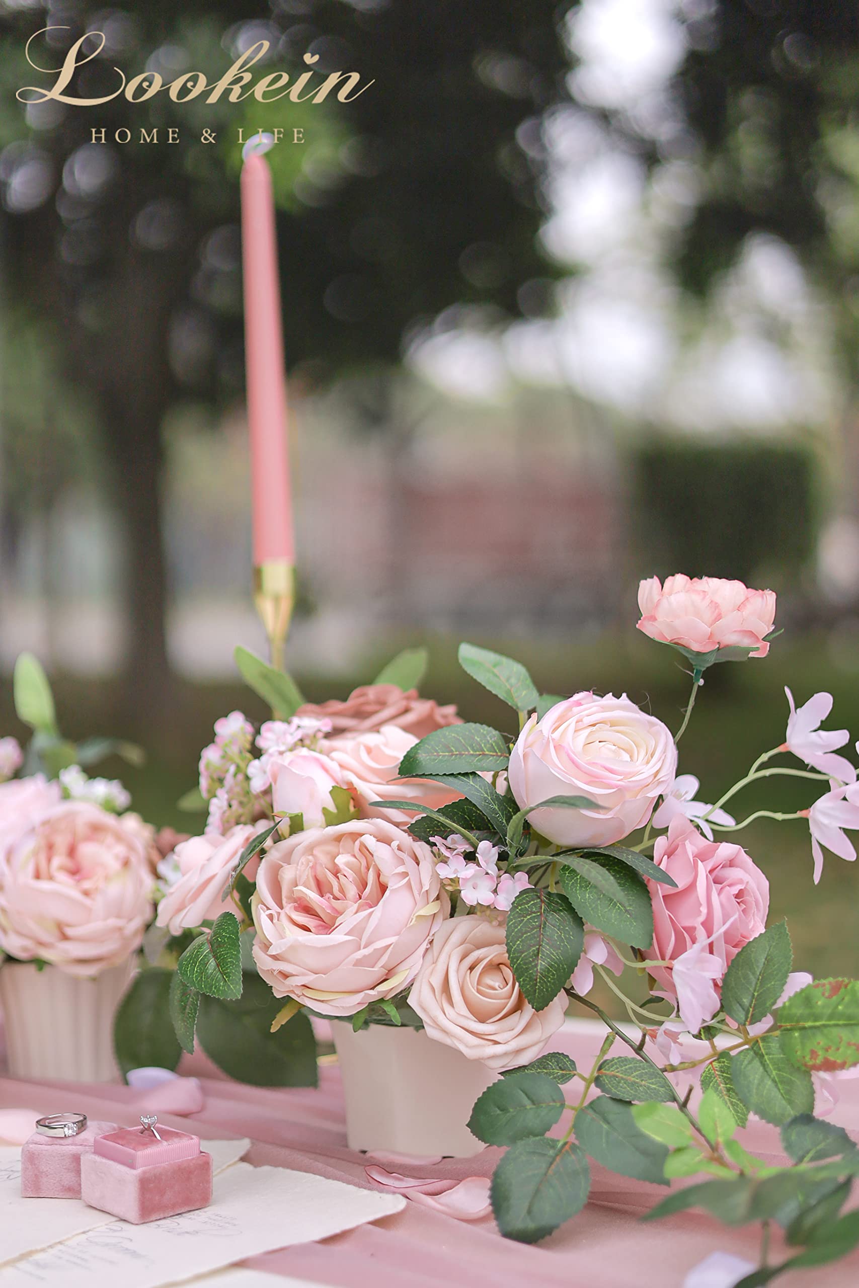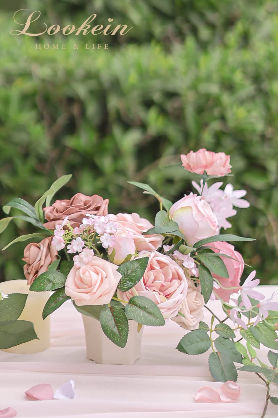 Specific Combo Pack: This artificial flower box set is combined with a variety of flowers and greeneries in a specific color scheme, which is perfect for your statement floral arrangement, making your event take on character easily.