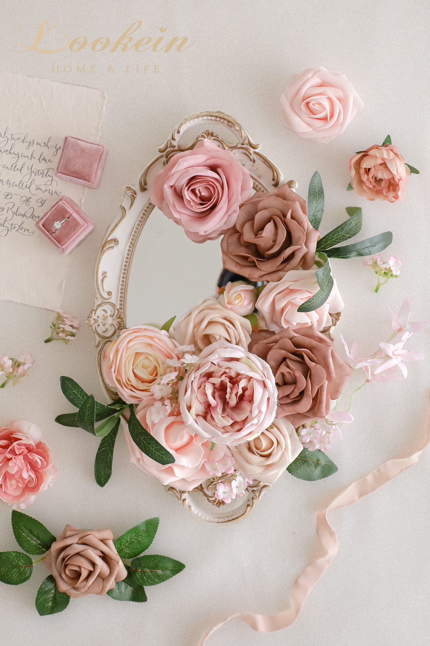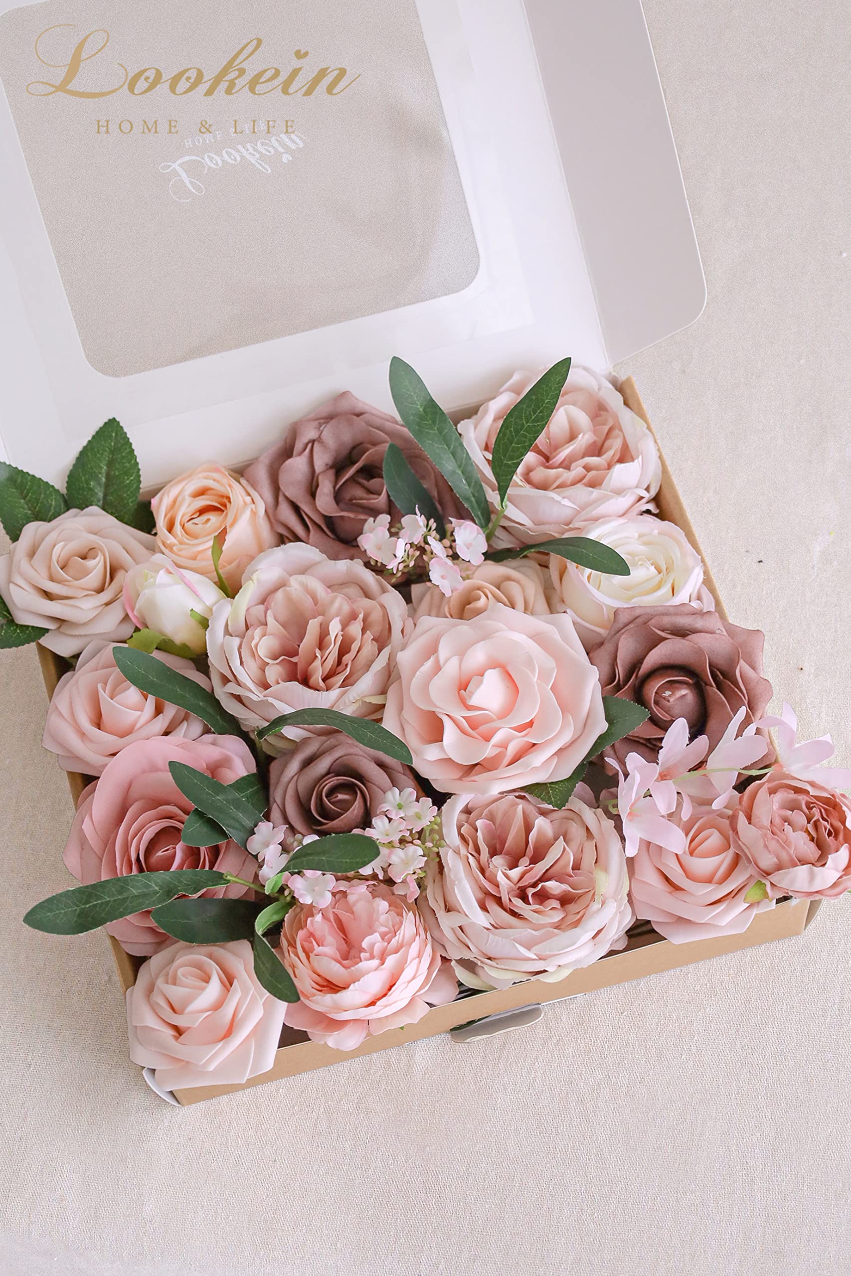 This artificial flowers box set is ready for you to create your wedding bridal bouquets, bridesmaid bouquet, kissing ball, table centerpieces, floral arrangements, wreaths, aisle markers, arch flowers, or any other flower decorations that you want at your wedding, party, baby shower or home.
