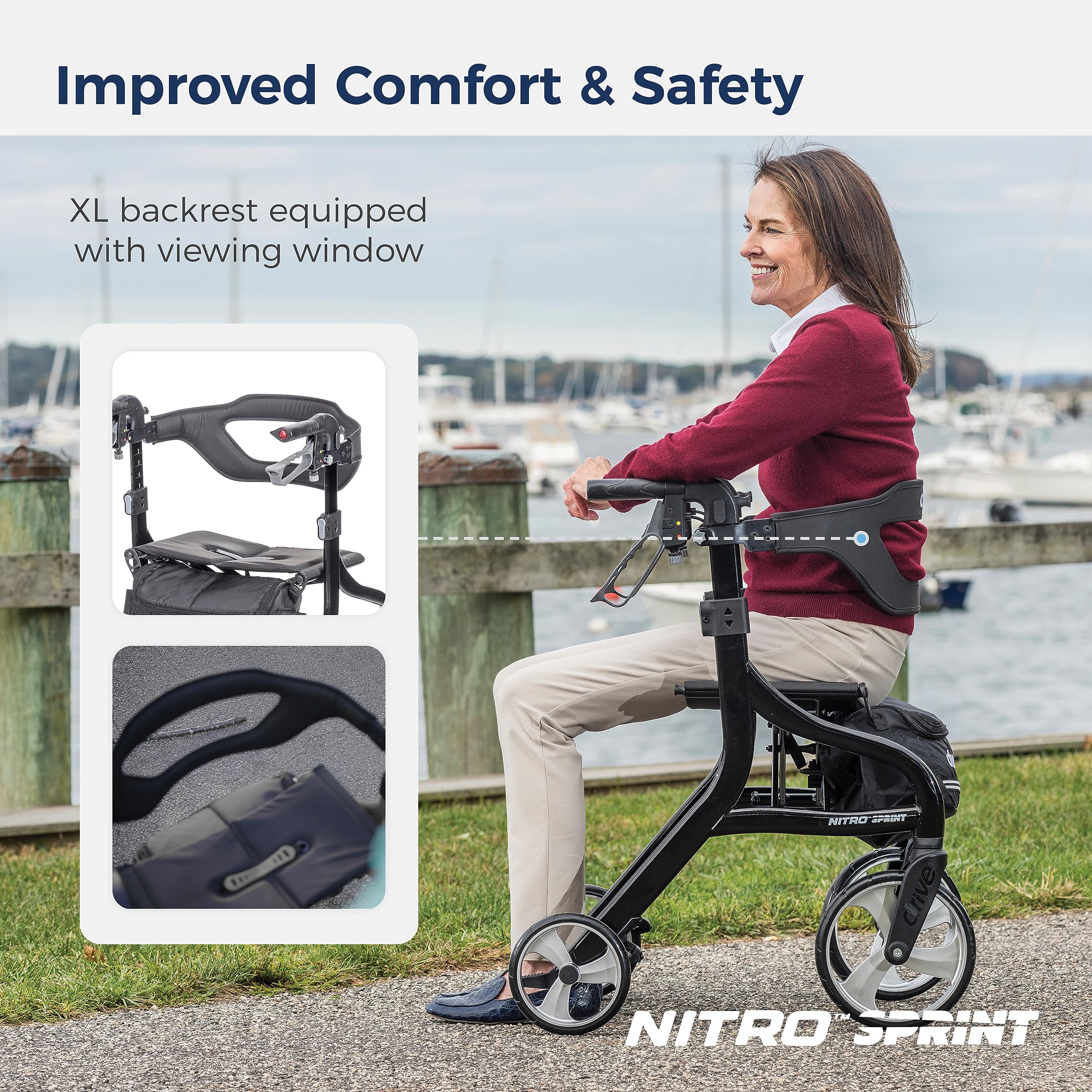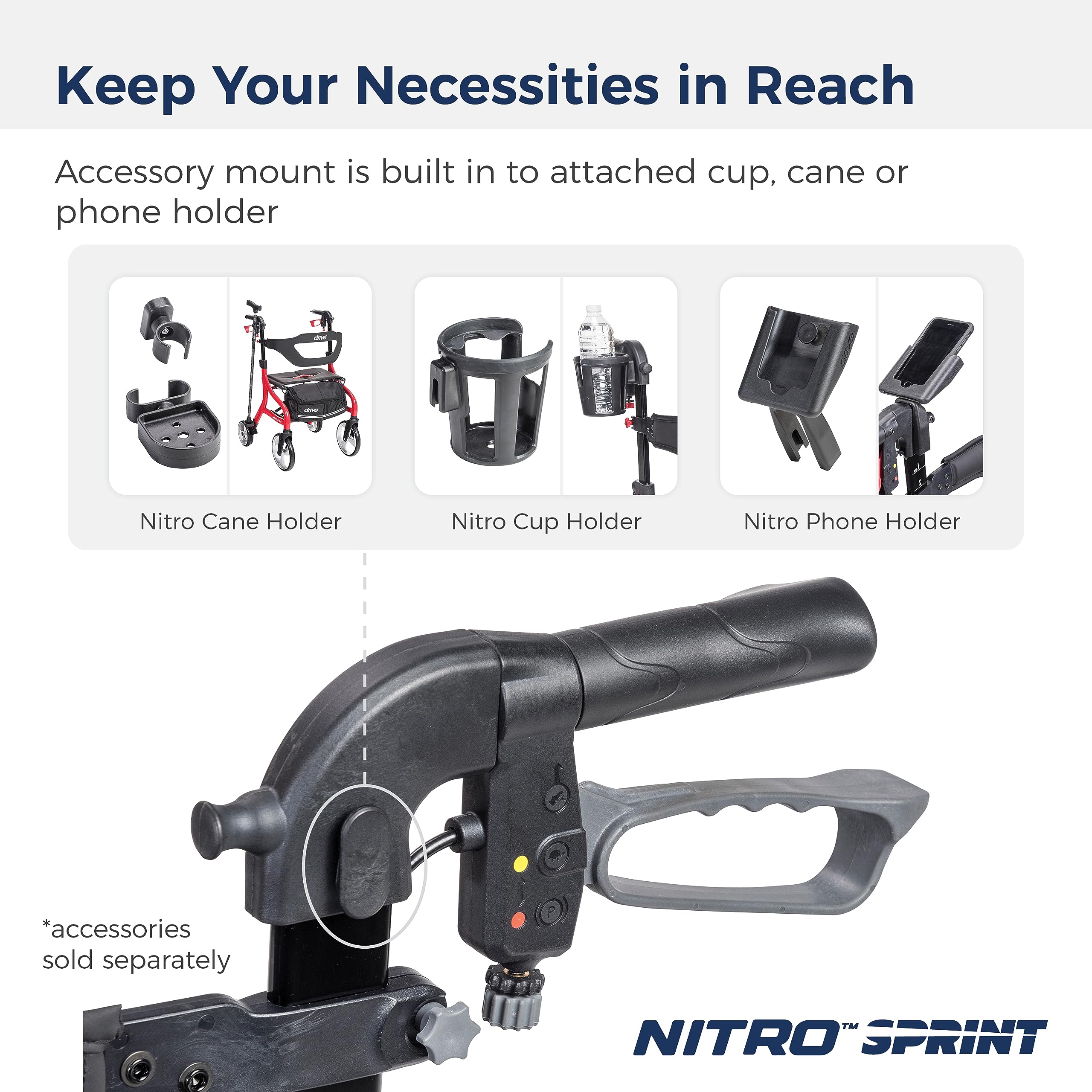 Stable Everyday Mobility: The Drive Medical Nitro Sprint Foldable Rollator Walker delivers secure, stable support with a strong aluminum frame and one-handed folding convenience