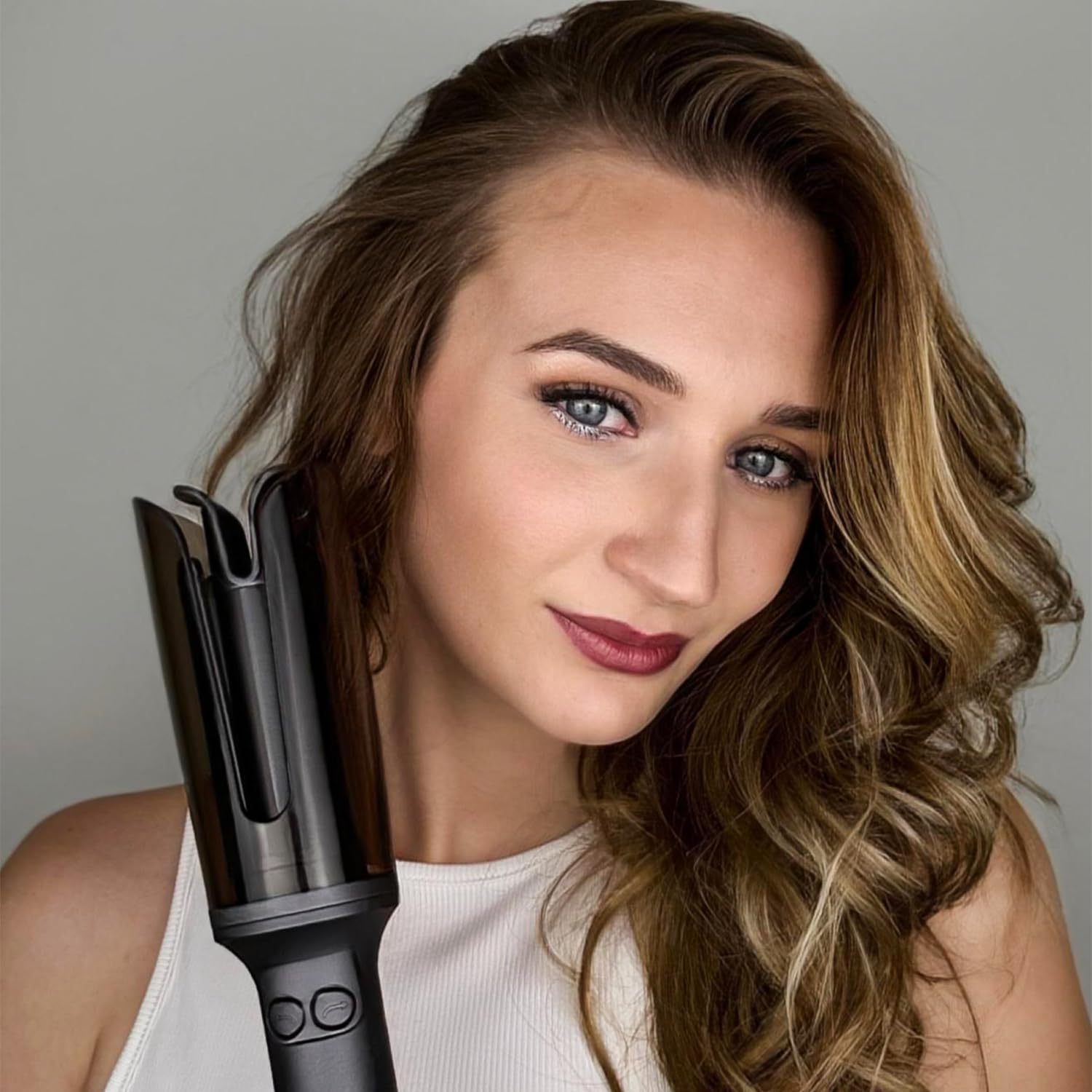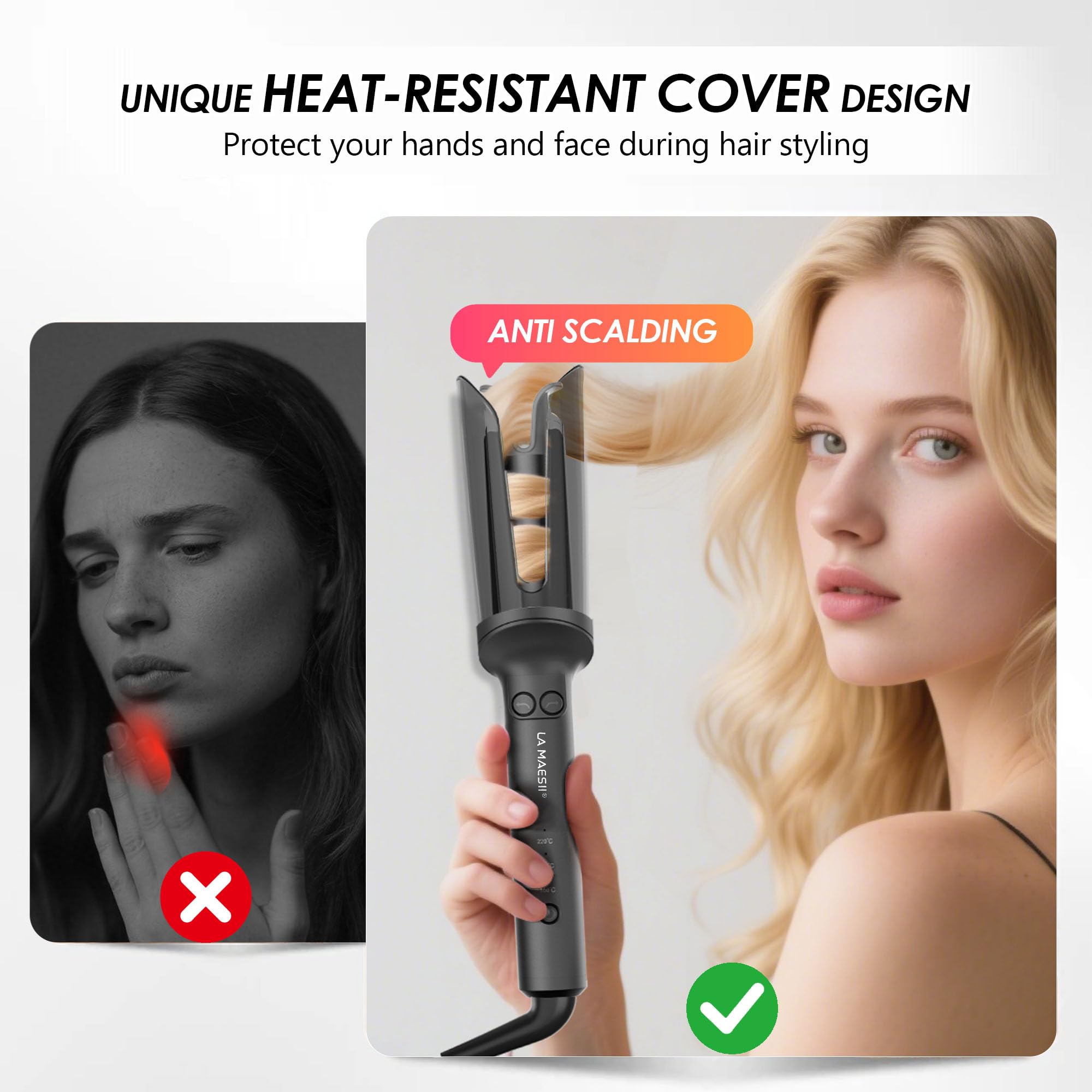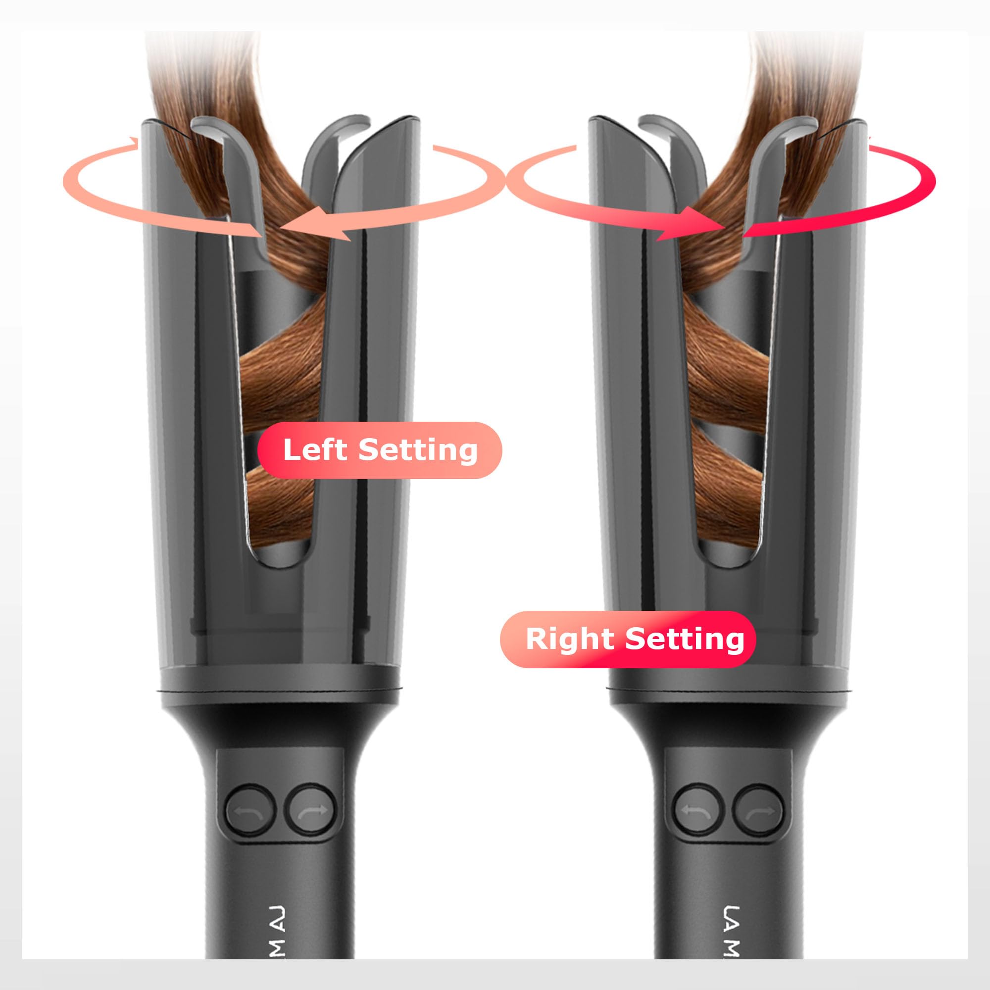 【One-Click Auto-Rotating Curling Iron】 LA MAESII Automatic Curling Iron featuring one-touch auto-rotation technology. The 2-way rotation system effortlessly creates soft waves or defined curls.In just 10 minutes, you're ready to go with fabulous curls. The curly hairstyle can lasting 72h.