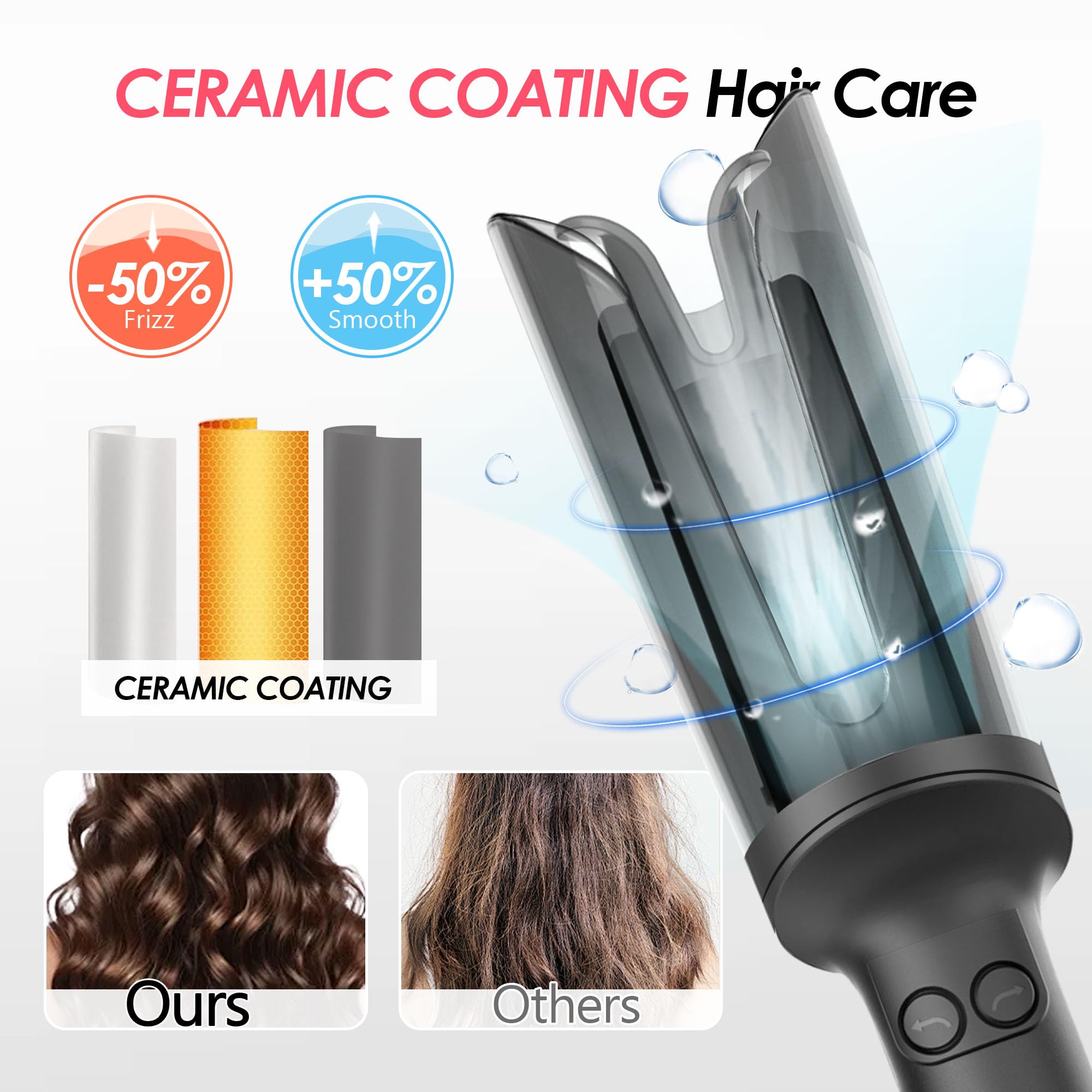 【 Ceramic Coating Ionic Hair Care 】 The smooth ceramic coating can ensure gentle and even heat distribution, reduce heat damage, minimizes frizzy. When the automatic curling iron is working, the negative ions released can lock in moisture,enhance hair luster, and make the hair smoother and healthier.