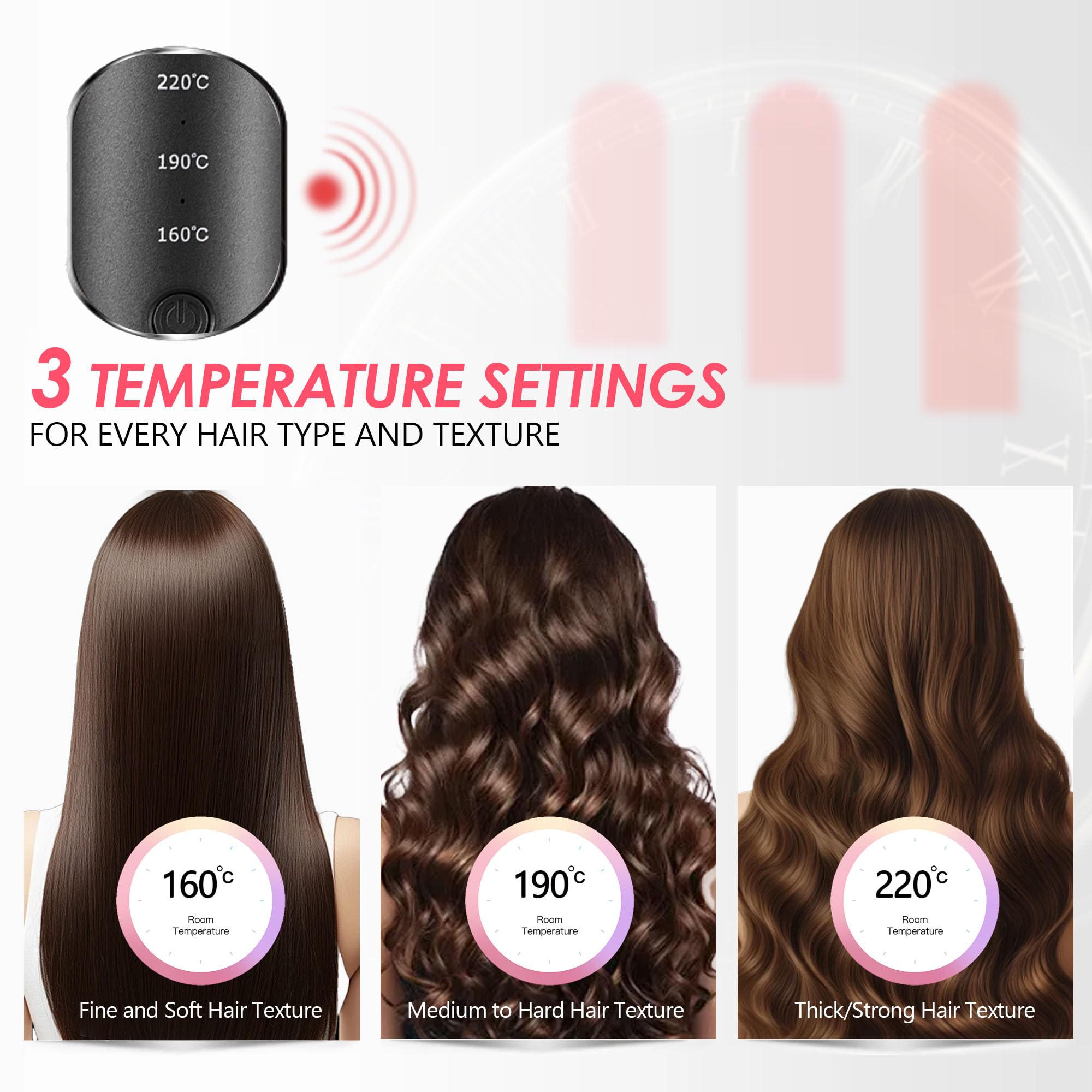 【3 Temps Customizable Heat Settings】 This curling iron offers three adjustable temperatures (160°C/190°C/220°C) for precise thermal control and quick 10-second heating.It is suitable for all hair types. The suitable temperature for fine and soft hair texture is 160℃, for medium to hard hair texture is 190℃, and for thick hair texture is 220℃. The built-in beep alert ensures precise timing for each curl.