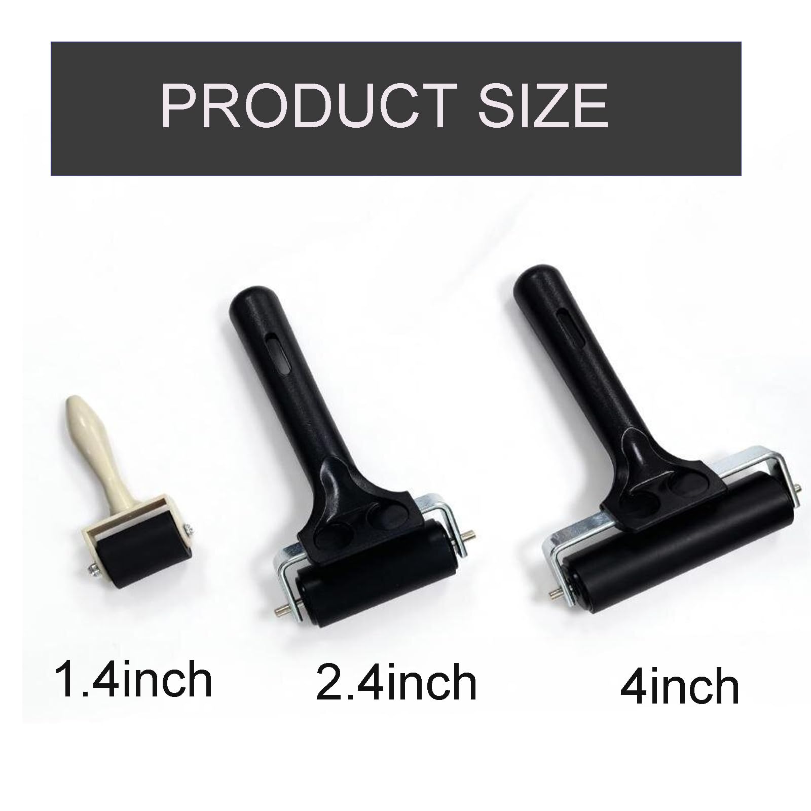 【Widely Used & Versatile】Our versatile set includes 1.4" 2.4", and 4" hard rubber rollers. Whether you're applying wallpaper, boat flooring, or working on intricate crafts and prints, you'll always have the perfect size on hand. This all-in-one set eliminates the need for multiple purchases.