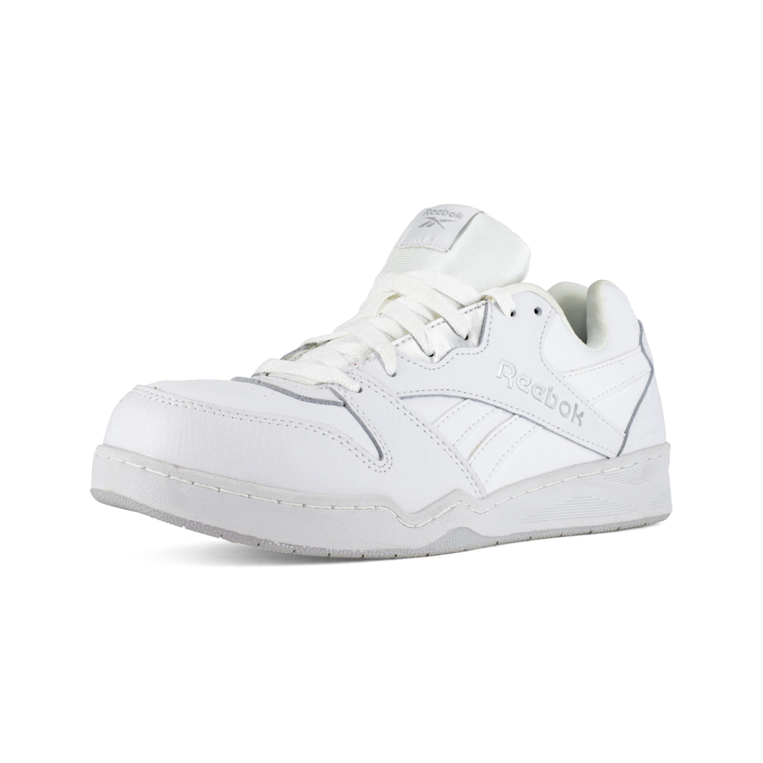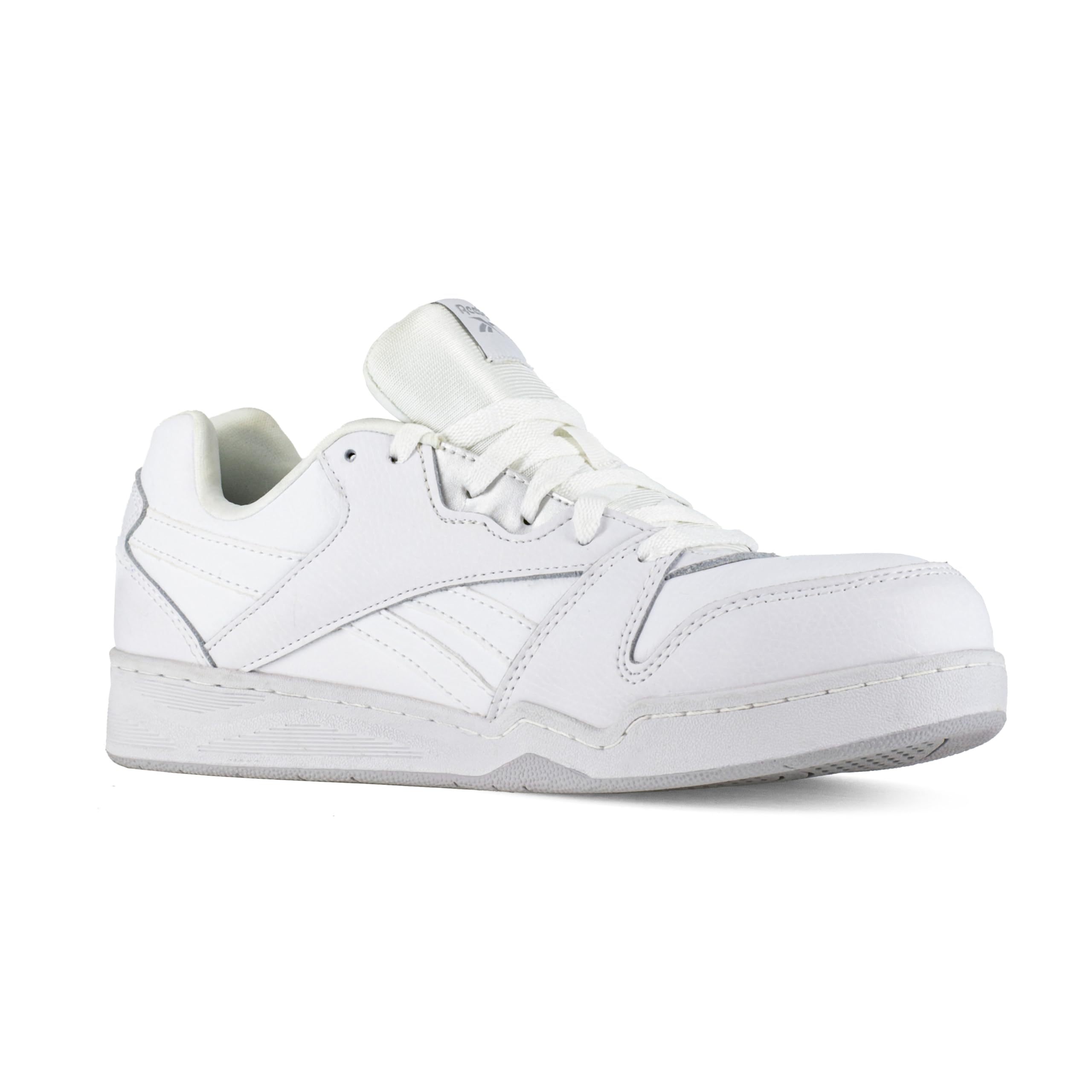 Description Inspire your work and gain some work cred with your co-workers with these heritage basketball-inspired styles from Reebok's timeless sneaker designs. Show some respect for your work while showcasing these timeless styles. These designs will keep you protected while bringing an everyday style and class to your job. Footwear Type: Low Cut Work Sneaker Toe Type: Composite Upper Material: Leather Color: White and Grey Lining: Moisture Wicking Nylon Mesh Insole: MemoryTech Memory Foam Removable Cushion Footbed Outsole: Slip Resistant Rubber Outsole Special Features: 100% Non-Metallic, Dual Resistor (SD 10) Features: ASTM F2413, Composite Toe, XTR® Brand Composite Toe, Static Dissipative 10 (Dual Resistor), Slip Resistant, Metal Free - High top and low cut classic basketball-inspired designs offer optimal support and stability - Blended leather and mesh uppers provide heritage comfort and breathability - Durable slip resistant rubber outsole keeps sneakers tough against any work environment - MemoryTech Memory Foam Cushion Footbed adds extra shock absorption and cushion - XTR® brand composite toe reduces weight while maintaining impact and compression protection (meets or exceeds ASTM F2413) - 360 degree sidewall stitch for long-lasting durability