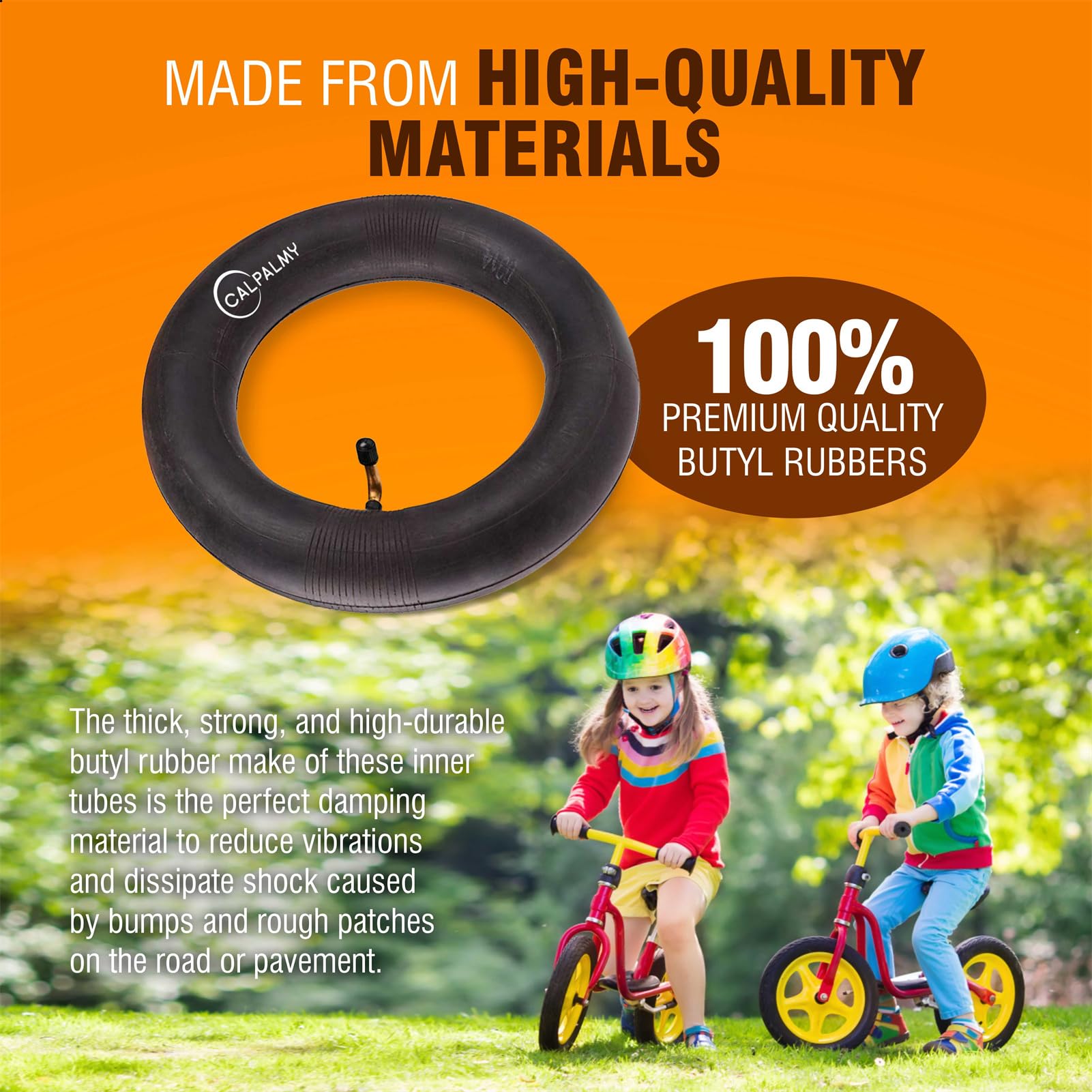 HEAVY DUTY INNER TUBES - Safety is our priority. CalPalmy aims to produce products that are safe and are of high-quality. That's why our range of replacement inner tubes are both tear-resistant and self-sealing to prevent huge punctures that can turn explosive. Protect yourself and your tires with our HEAVY DUTY inner tubes.
