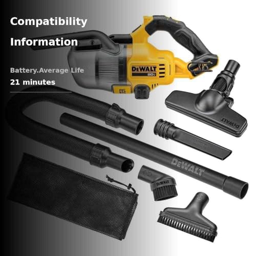 The DEWALT 20V Cordless Vacuum (Tool Only) is a jobsite cleaning solution that provides users with powerful performance (46 CFM) to pick up common jobsite debris ranging from drywall, dust , even small screws and nails. This versatile vacuum cleaner comes with 6 different cleaning attachments to tackle any cleaning job, from ground level to above ground. The handheld vacuum can be used to handle smaller messes or can be used in combination with the extension wand and floor attachment to clean floor areas. A bright LED light illuminates the darkest areas. A HEPA filter allows for efficient, clean cleaning of fine dust and drywall and follows compliance with OSHA Table 1 under cleaning rules. It comes fully equipped with an extension tube, floor nozzle, flexible hose, crevice nozzle, gulper brush, round brush, belt hook, accessory holder and HEPA filter. Up to 21.4 minutes of run time per charge using the DCB205 battery (sold separately).