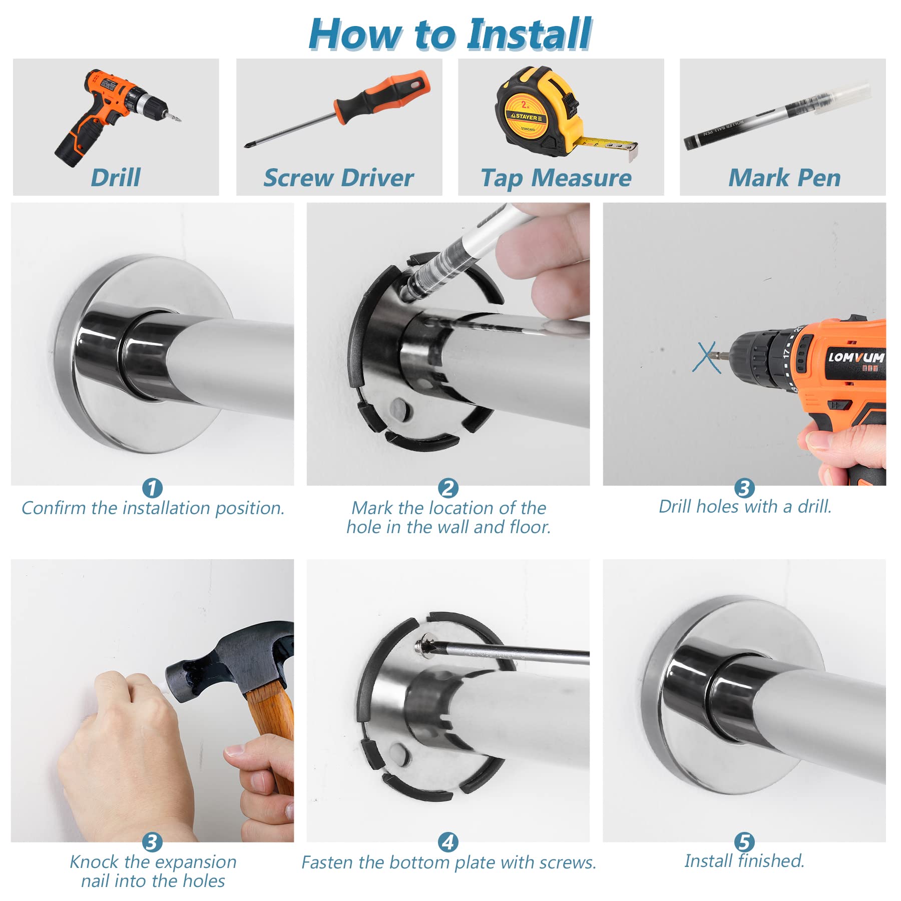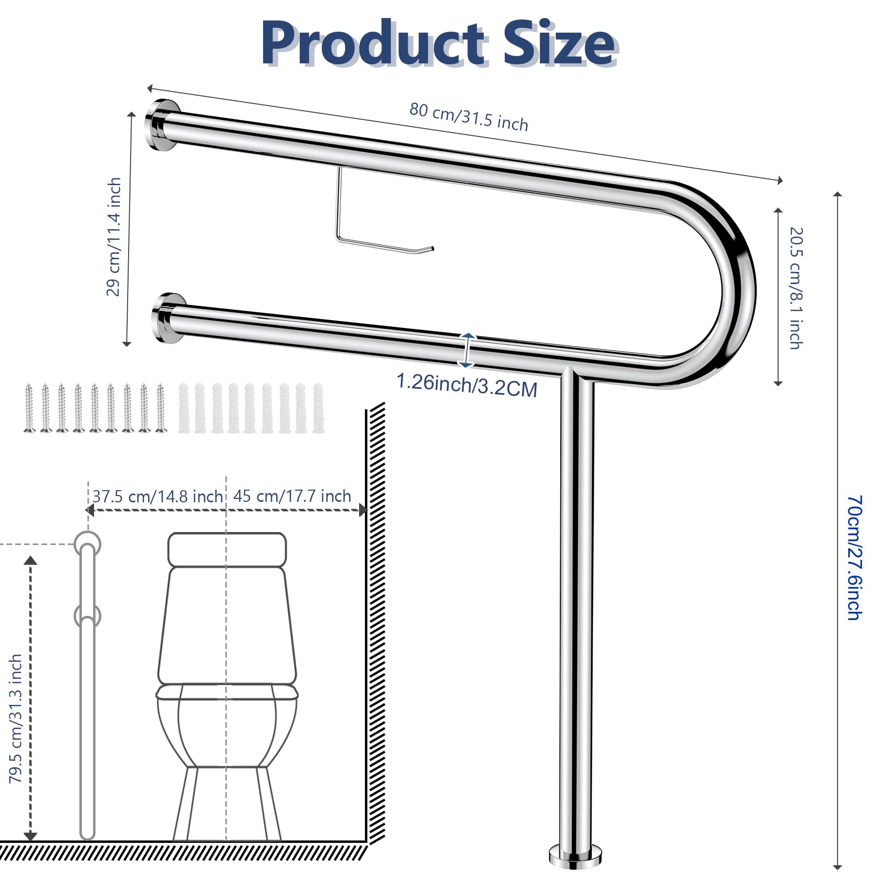 Easy Installation: Our handicap rail comes complete with mounting screws and plastic anchors, simplifying the process of anchoring it to the floor and wall. It's easy to mount these bars beside your washbasin, toilet, or in the shower room. Please note that to support the maximum weight limit, grab bars must be securely anchored to solid walls.