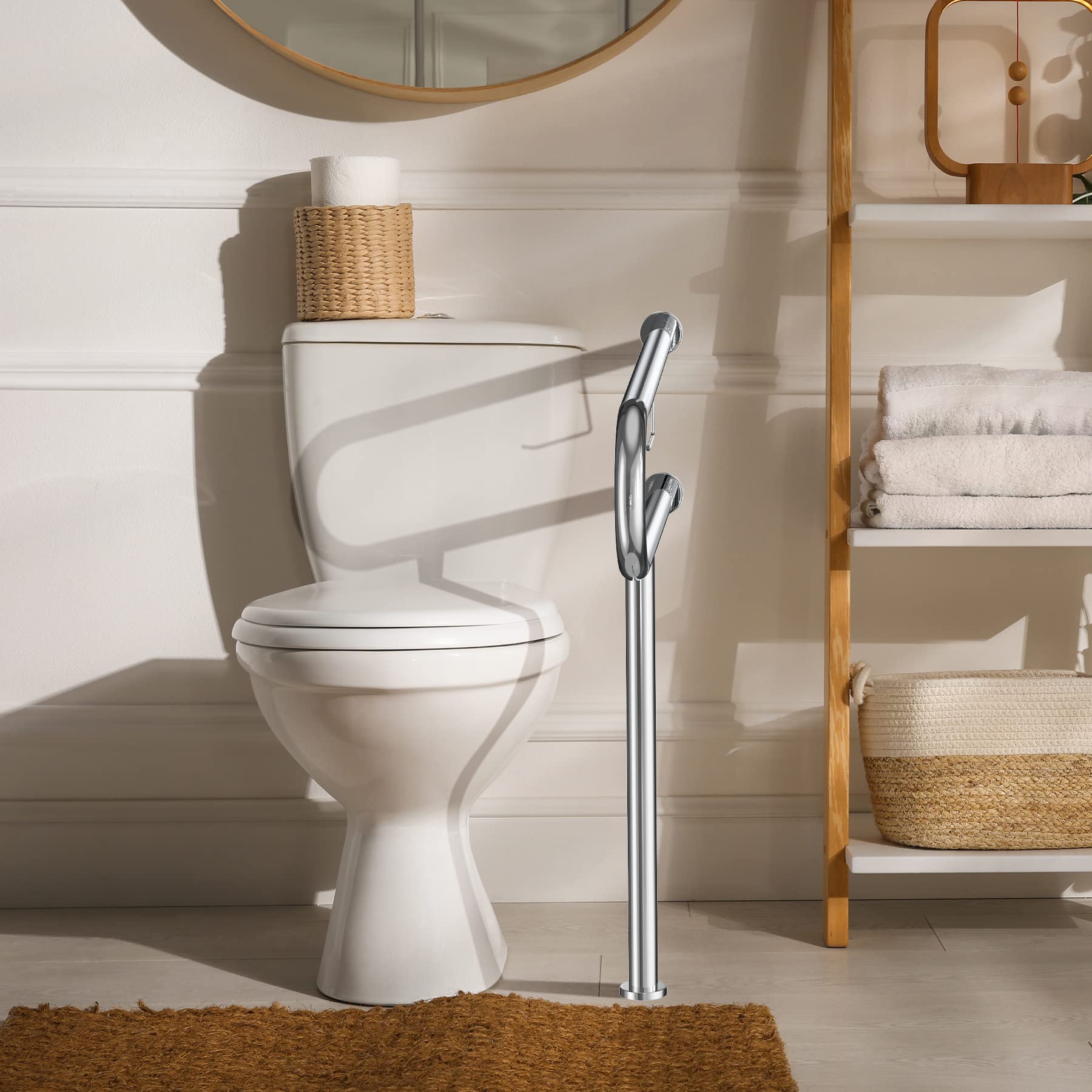 Enhanced Stability with Leg Support: Featuring wall-to-floor leg support, these bars provide added strength and stability. This design is especially beneficial for seniors when sitting down or standing up, significantly improving bathroom safety.