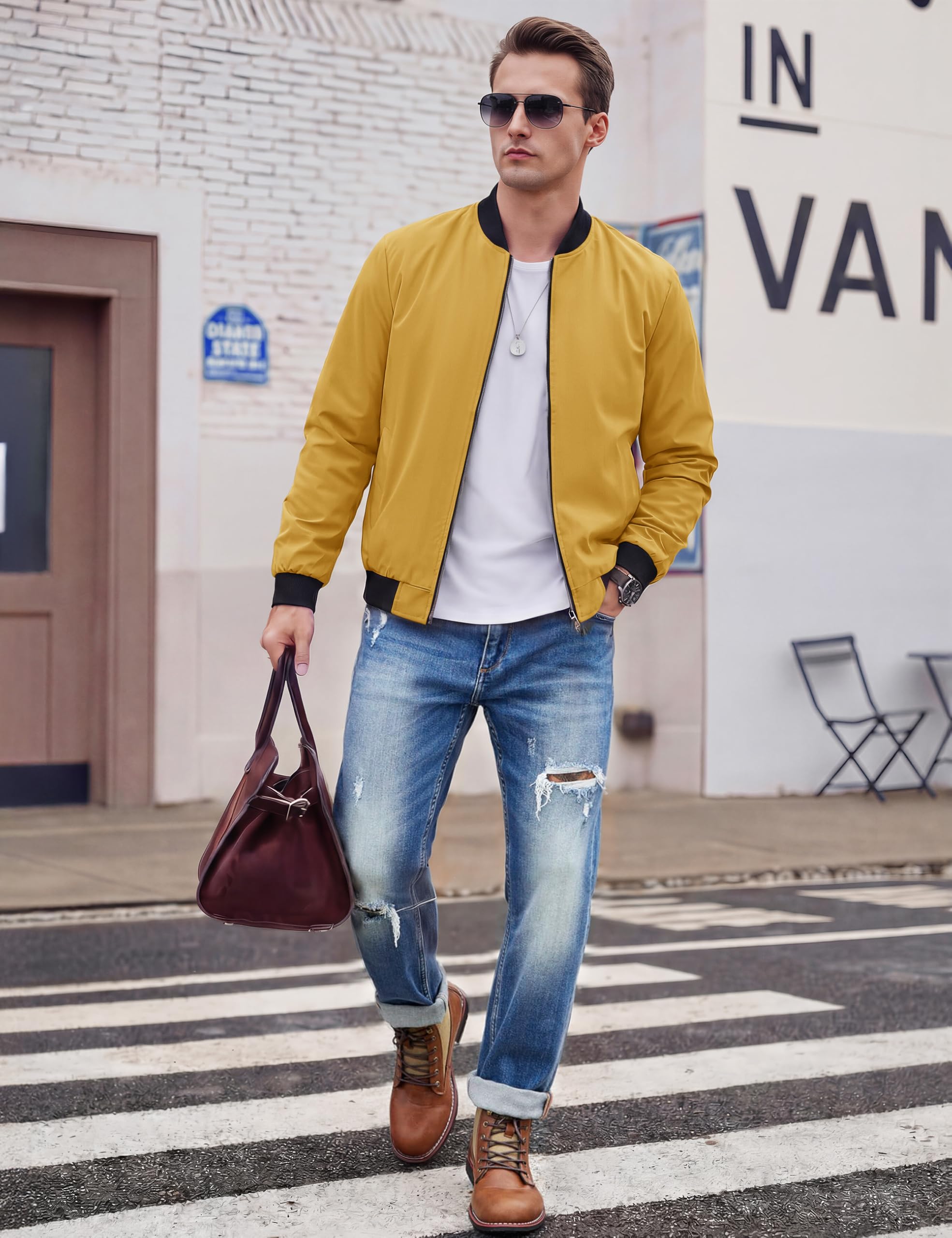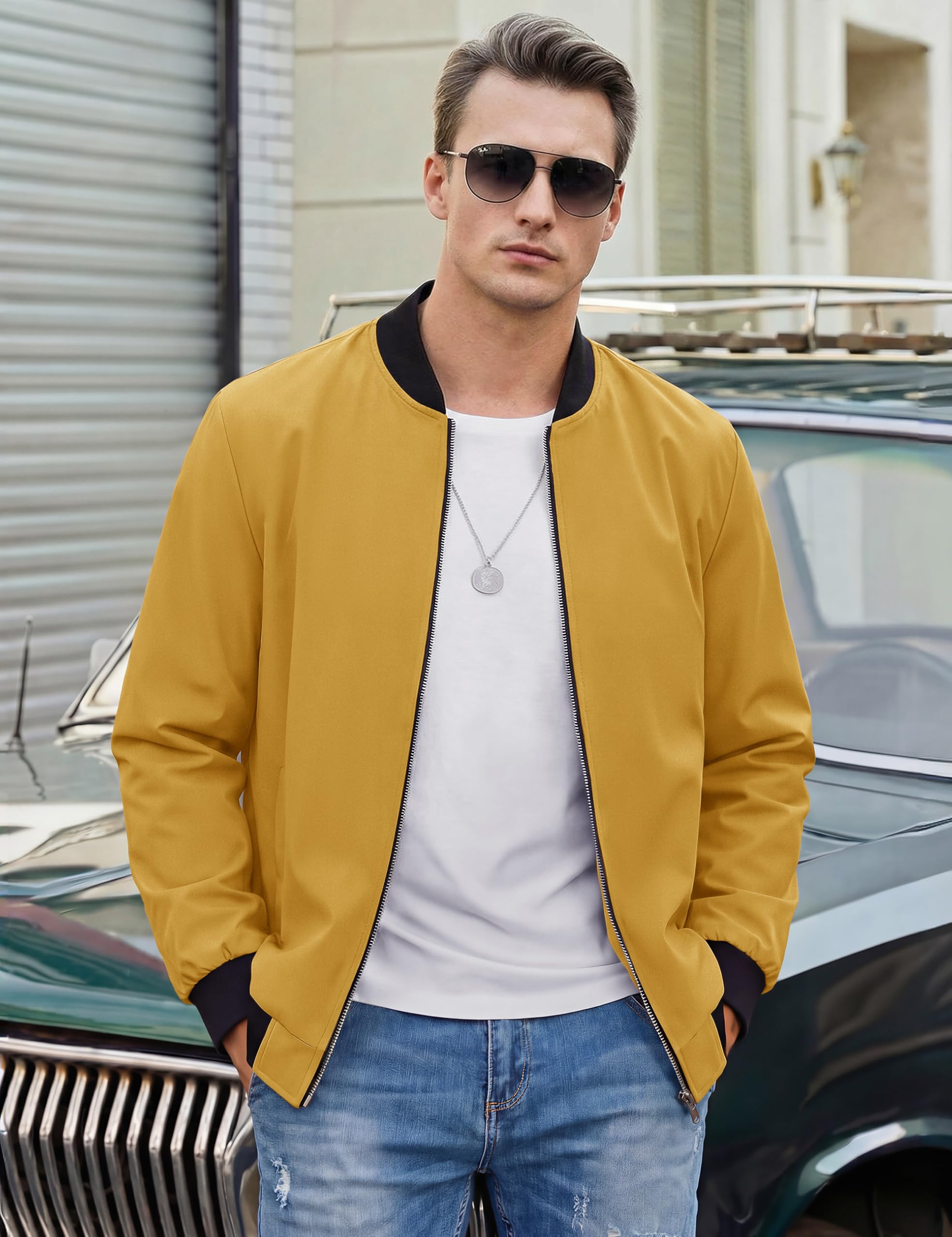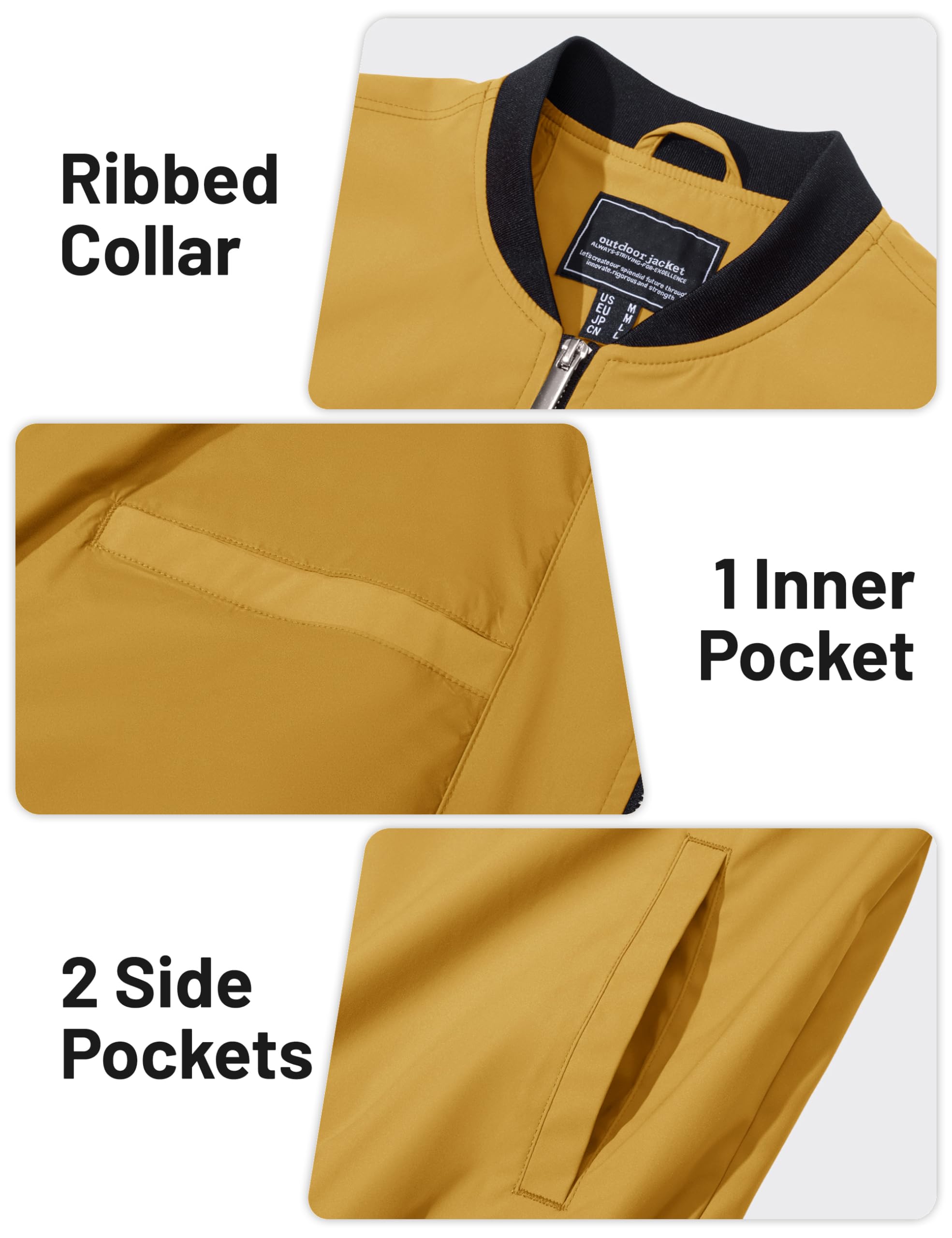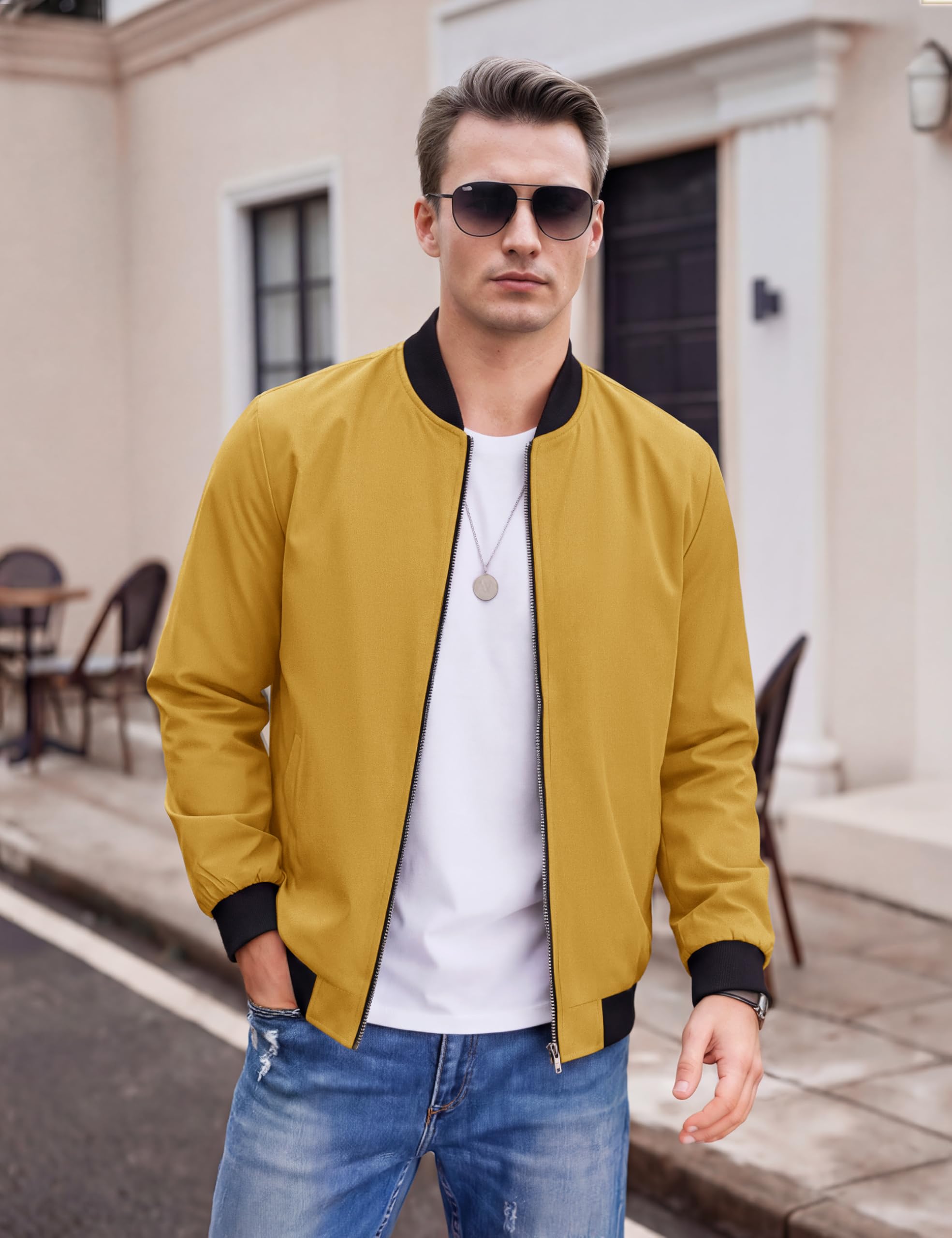 [Fashion and Stylish] - With Rib collar, cuff and hem, Full Zip, Long Sleeve design, men's bomber jacket is your spring jacket of choice!