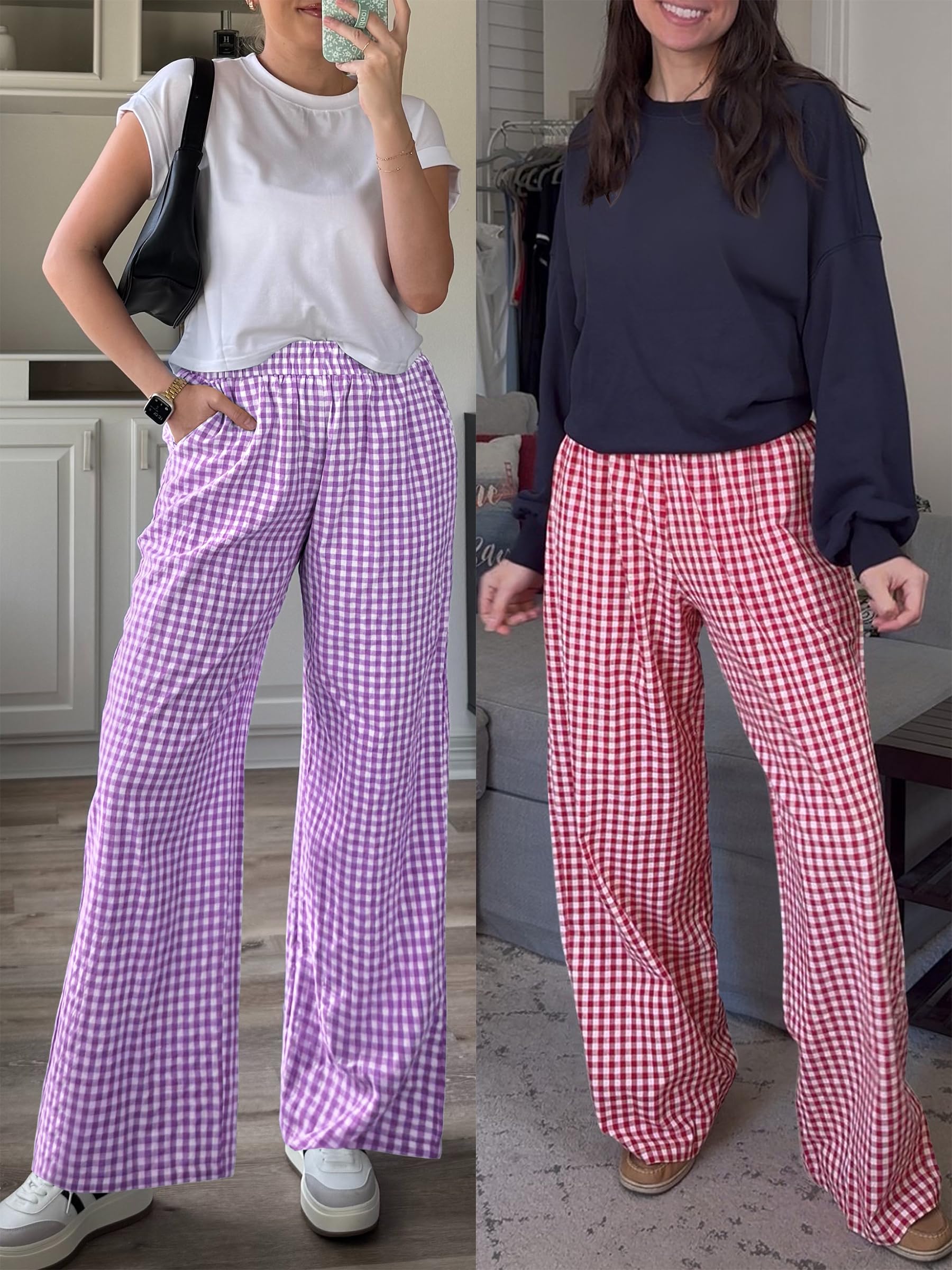 Features - Women's casual palazzo pants, smocked elastic waist, wide leg, long, plaid&stripe design, soft and breathable. Our pants are perfect for daily wear, lounging at home, hanging around outside, traveling, vacation, or office work. Easily matched with slippers, heels or sneakers.