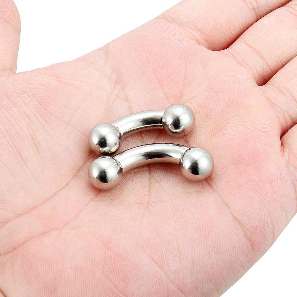 Includes 2PCS 316L Surgical Steel Bent Curved Barbell PA Ring,with Different Bar Length 1/2Inch(12mm) and 5/8Inch(16mm),Each Size One Piece.