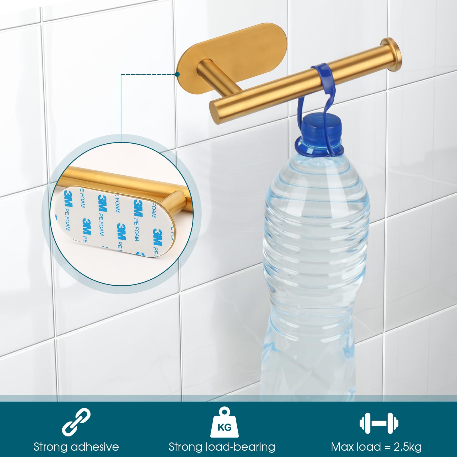 【Toilet Paper Holder No Drilling】The Toilet Paper Holder come with 3M tape, you just need 1 minute to quick install.